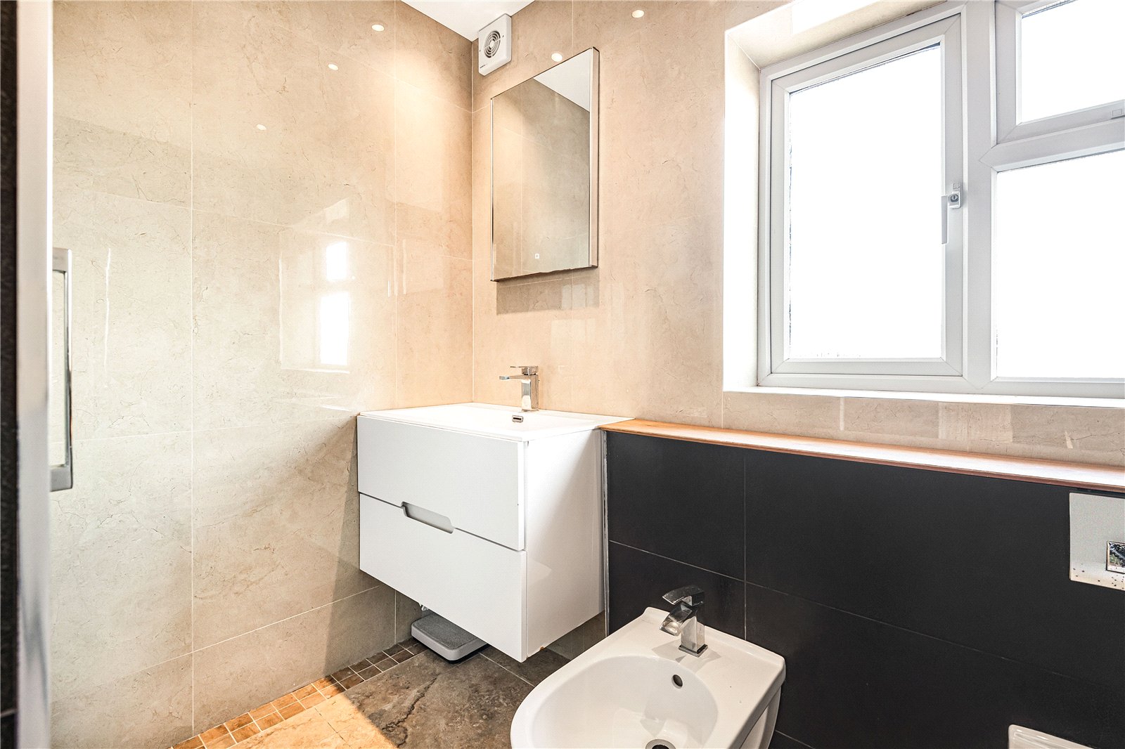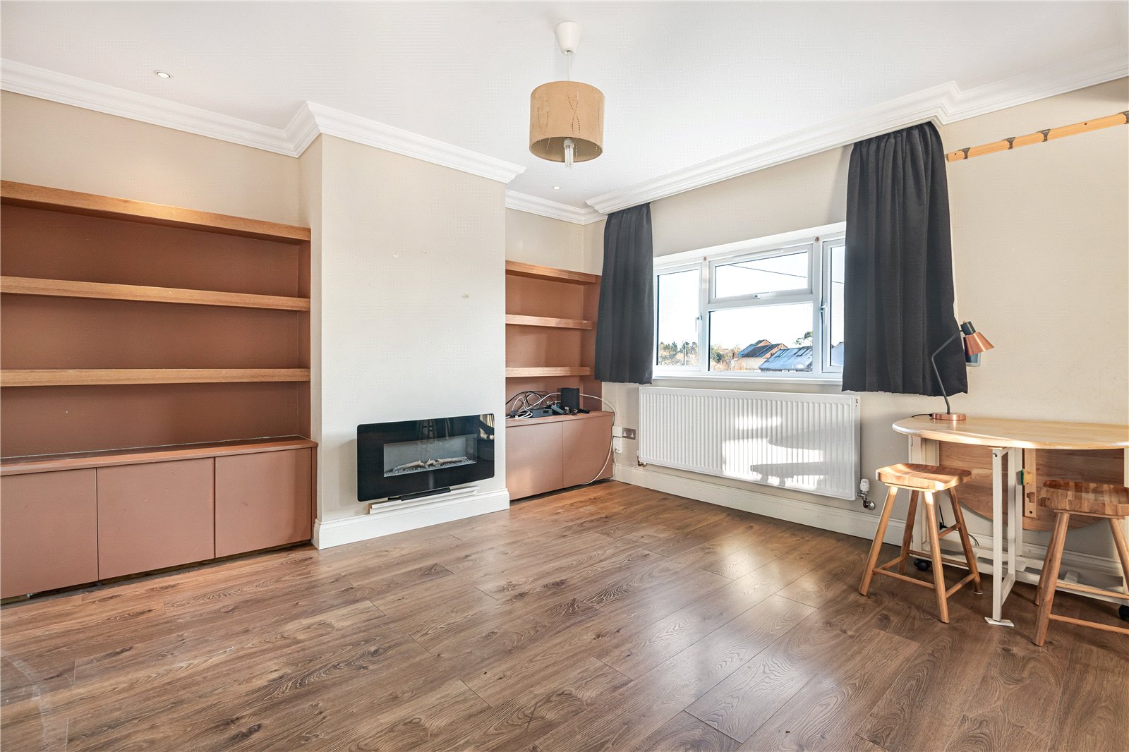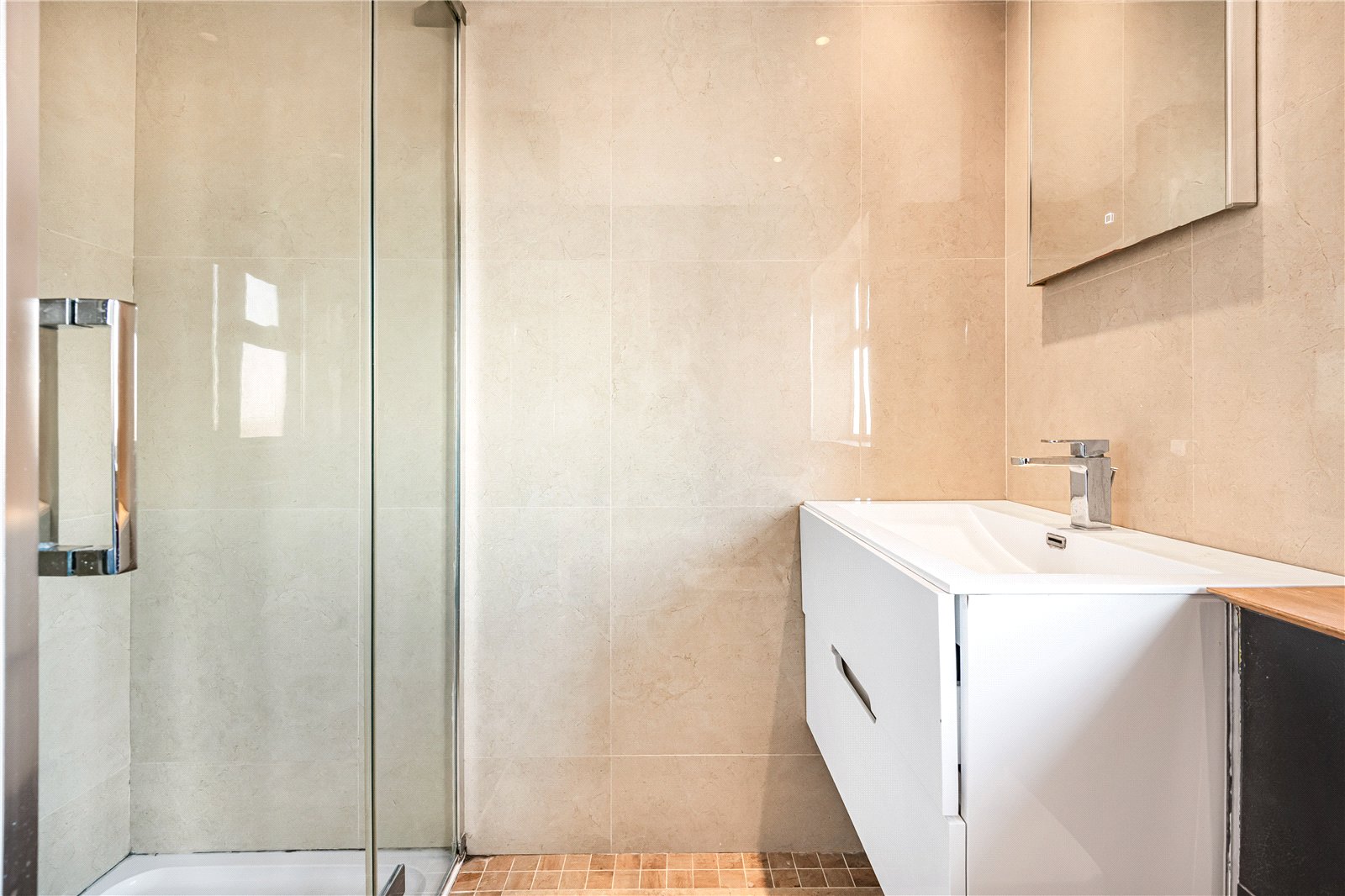 The accommodation further includes a generous double bedroom with ample built-in wardrobes and a contemporary bathroom fitted with a shower.