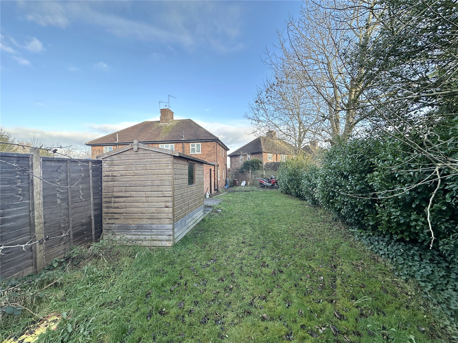 Externally, the property benefits from a generous private garden and two sheds which, subject to the necessary planning permissions, could be adapted for use as a home office or gym. Additionally, there is a boarded loft space offering excellent additional storage, accessed via a wooden loft ladder from the hall, and the property further benefits from ample on-street parking. Offered Chain Free.