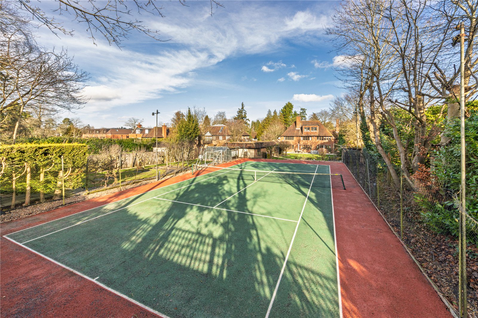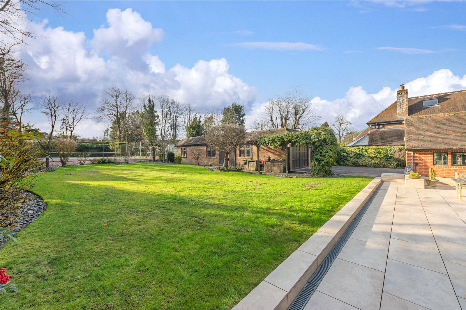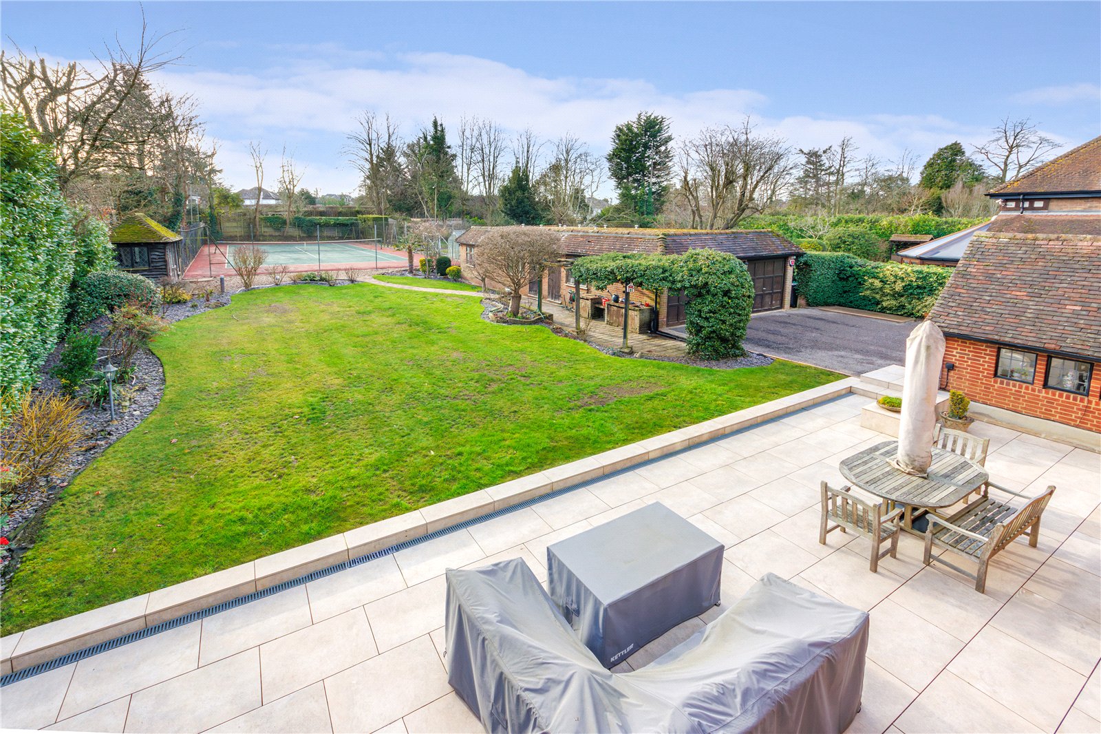 Occupying an exceptional plot on the highly regarded Loom Lane in Radlett, this detached residence presents an ideal opportunity for a purchaser seeking to build their dream home, with the property offering excellent potential for extension and enlargement, subject to the necessary planning permissions, or to acquire a property that is perfectly comfortable to live in immediately. Set within grounds extending to just over 0.5 acres and benefiting from a desirable south-west facing aspect, the house offers generous accommodation arranged over three floors and enjoys a prime position within one of Radletts most prestigious residential roads.The ground floor features a welcoming entrance hall leading to a variety of well-proportioned reception rooms, offering excellent flexibility for both everyday family living and formal entertaining. The kitchen is well positioned within the layout and is complemented by additional reception space and a conservatory overlooking the rear garden, allowing natural light to flood the interior and creating a strong connection between the indoor and outdoor spaces. Further benefits include a pantry, guest cloakroom, cellar and direct access to a double garage.On the first floor, the principal bedroom is complemented by en suite facilities, with additional bedrooms of excellent size served by further bath and shower rooms. The second floor provides further versatile accommodation, including an additional bedroom and a separate study, making it ideal for home working, guest use or older children.Outside, the property is approached via an attractive front garden, while the rear garden is a particular highlight. Enjoying a south-west facing orientation and extending across the majority of the 0.5-acre plot, the garden offers a high degree of privacy, is predominantly laid to lawn and features a private tennis court, providing a rare and highly desirable recreational facility within a residential setting.Loom Lane is conveniently located for Radlett village centre, the mainline station with direct access into central London, highly regarded local schools and excellent road connections. This is a rare opportunity to secure a prime plot in a premier location, offering both immediate enjoyment and significant future potential.