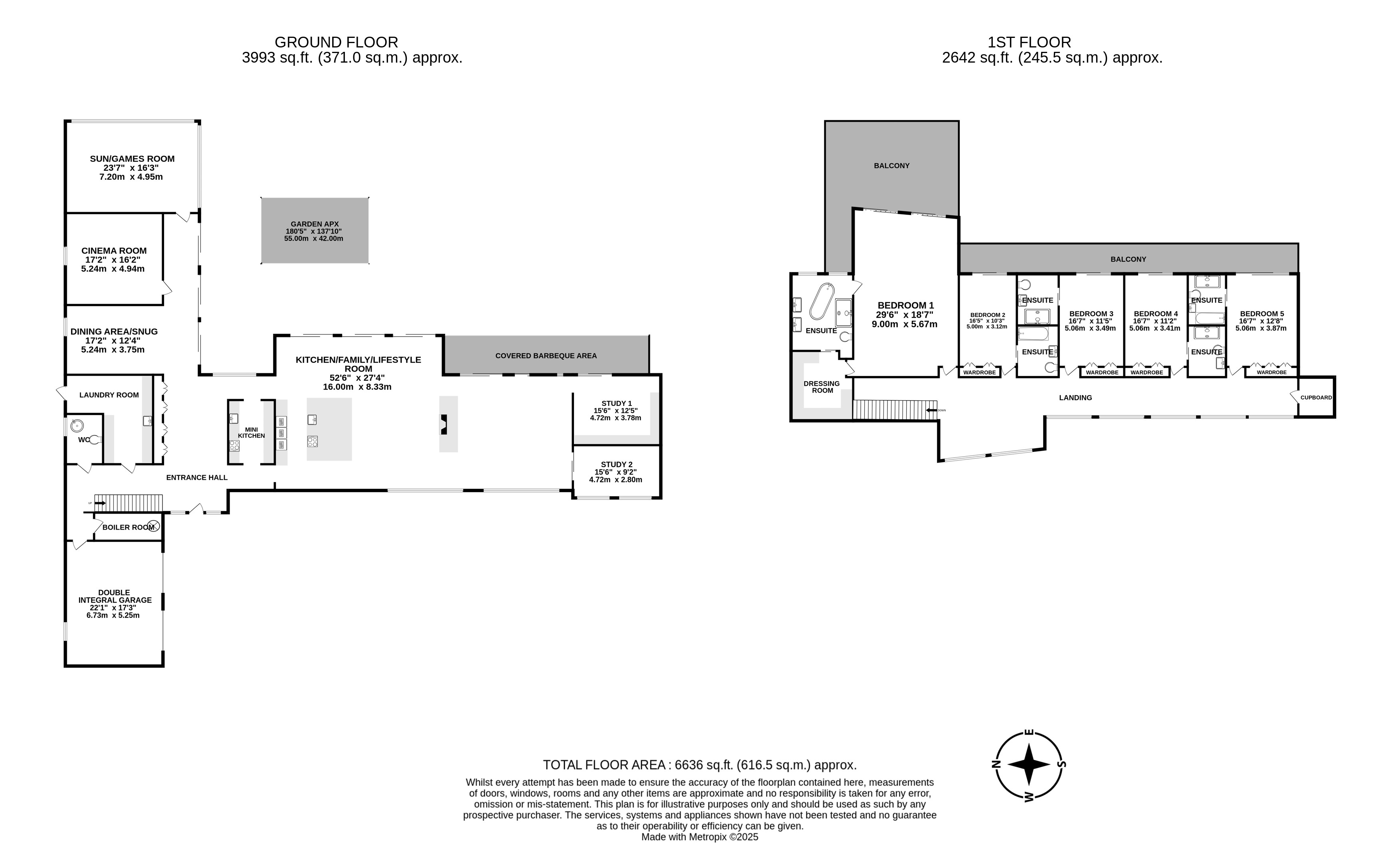 The first floor of High View is just as impressive, with five generously sized bedrooms, each boasting its own ensuite bathroom for ultimate privacy and convenience. The primary suite is a magnificent retreat, spanning 296 by 187 and featuring a luxurious en-suite, a dedicated dressing room and access to a private balcony, perfect for enjoying serene views. Bedrooms two through to five all offer spacious layouts with built-in wardrobes and elegant ensuites, ensuring comfort and style for all residents.