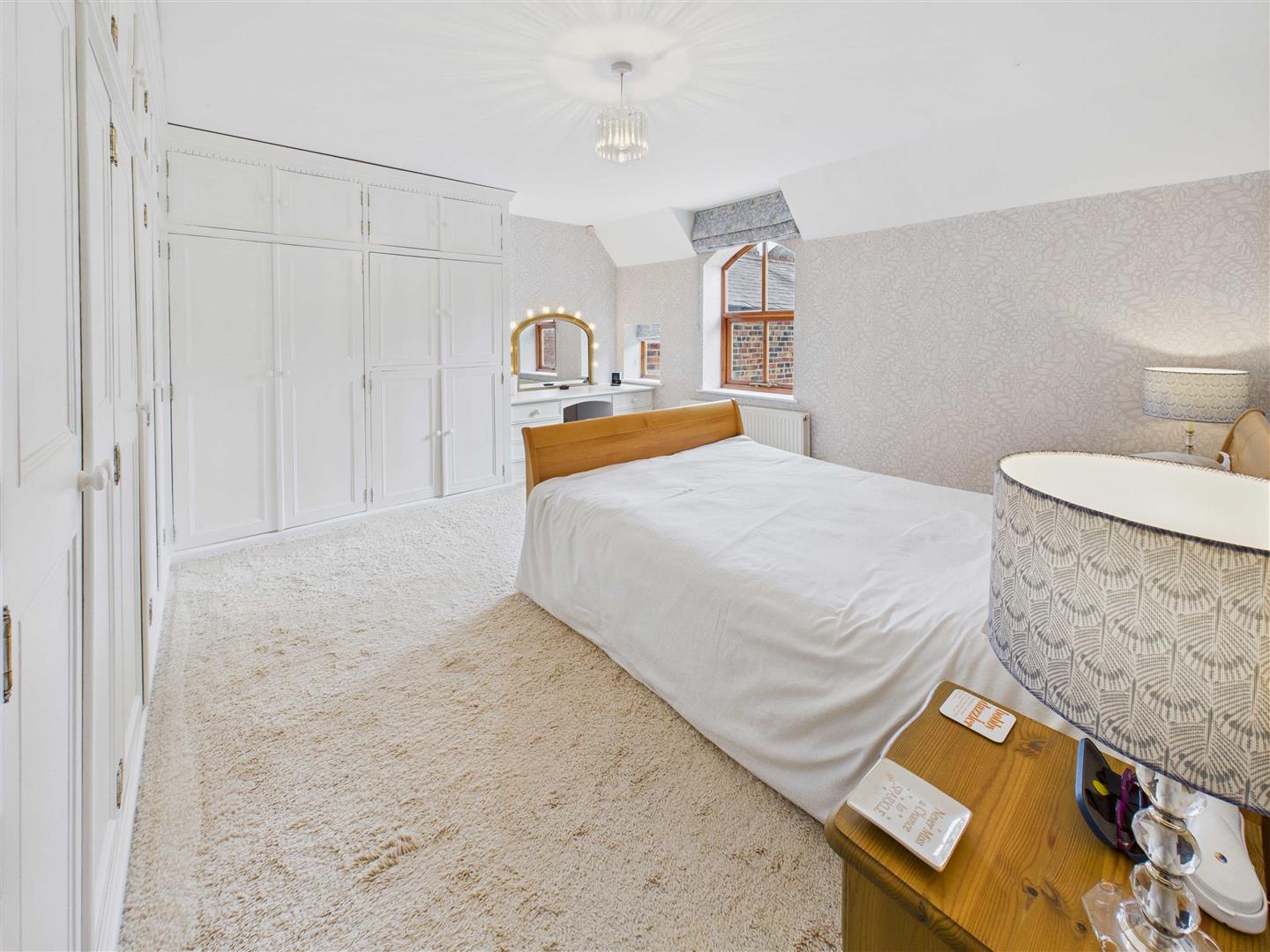 Bedroom 1 - 4.32m x 4.11m approx (14'2" x 13'6" approx) - A serene, calming room, having an array of fitted furniture comprising wardrobe, drawers, cupboards with inbuilt TV cubby and dressing table. Windows overlook the courtyard.