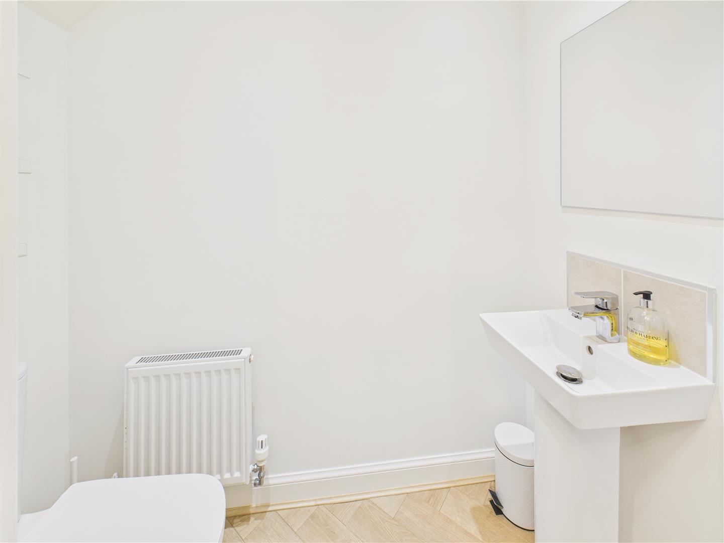Cloaks/W.C. - With low flush W.C. and wash hand basin. Herringbone style flooring.