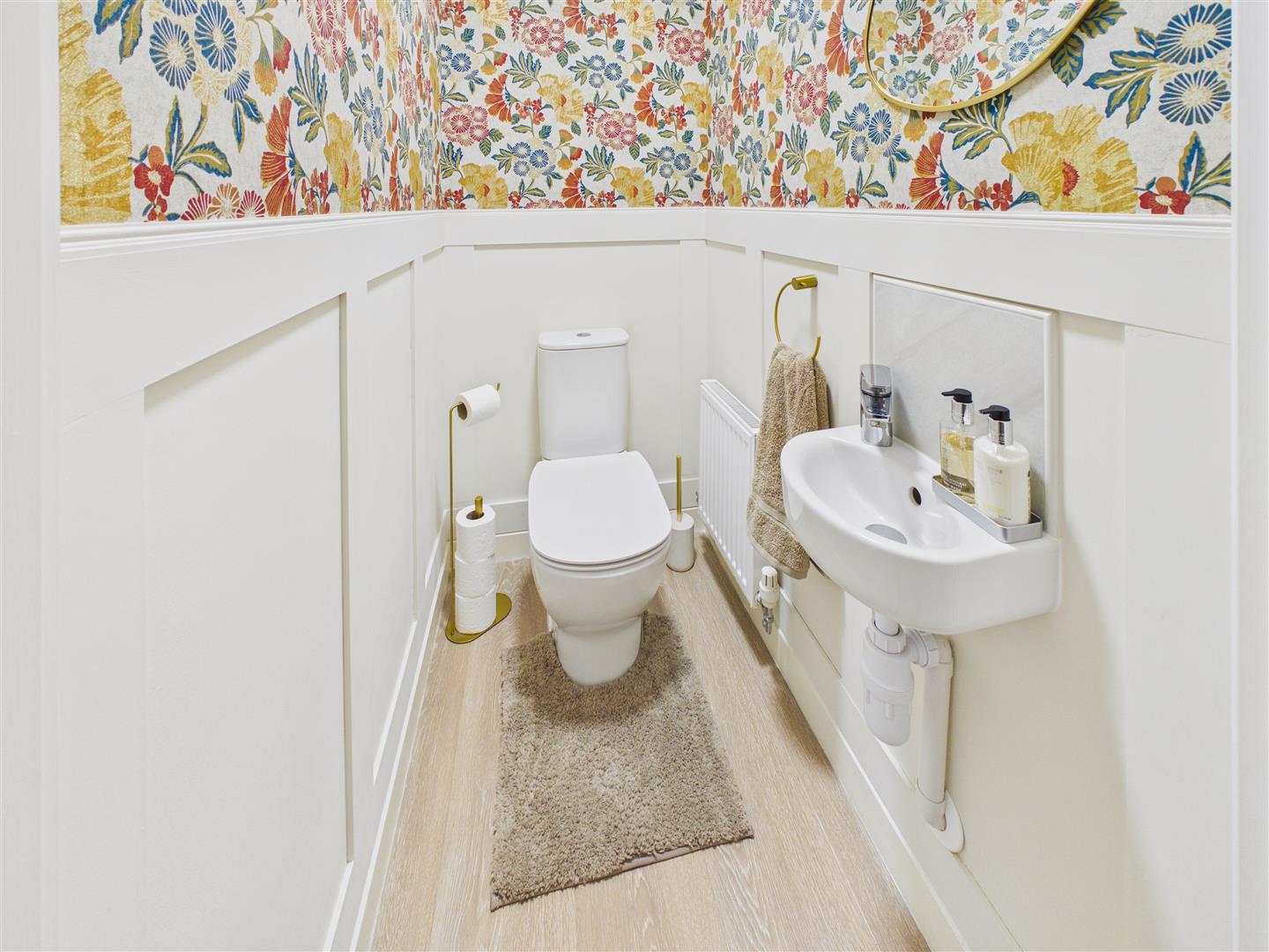 Cloaks/W.C. - Comprising low-flush W.C. and wash-hand basin.