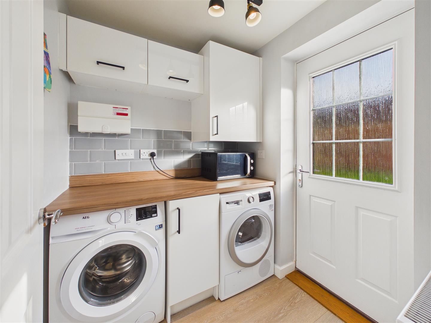 Utility - Fitted worksurfaces and cupboard space, plumbing for a washing machine and space for dryer. Understairs storage cupboard access and door to the rear patio.