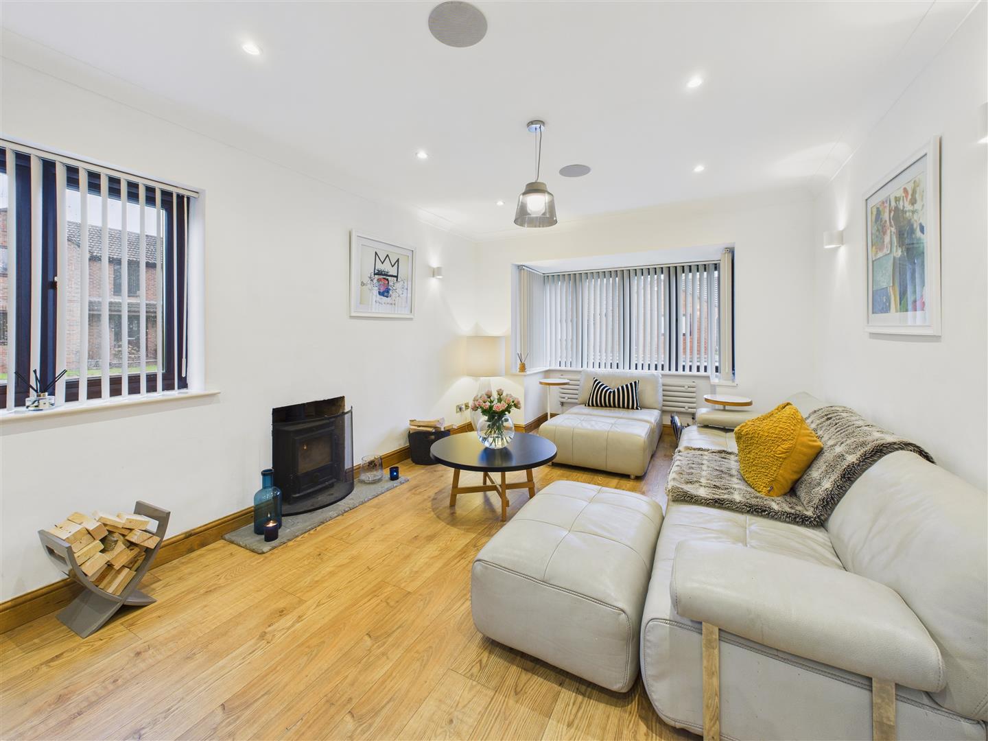 Lounge - Spacious living area with log burning stove upon a stone tiled hearth. Bay window to the front elevation and window to side. Double doors open through to the conservatory.