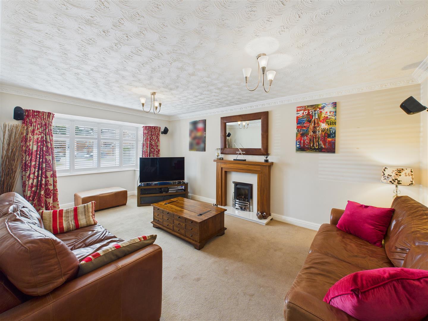 Lounge - A lovely room to relax or entertain in having a contemporary fire surround with marble hearth and backplate housing a "living flame" gas fire. There is a bay window to front elevation with fitted shutters.