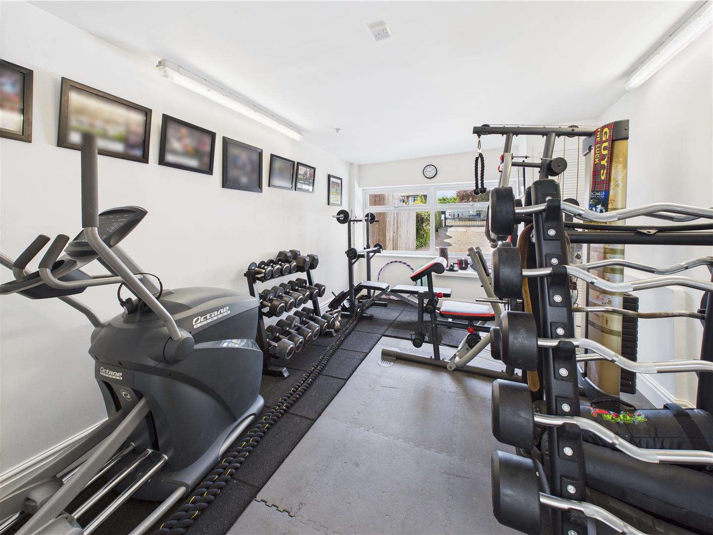Outside - Occupying a prominent position on the road scene, there is a wrought iron perimeter fence to the front with twin wrought iron auto gates opening up to the "horseshoe" driveway around a central border with feature palms. The rear garden is a delight having a patio and leafy environment to enjoy, entertain or relax in. There is a large paved patio with lawn beyond bounded by mature shrubbery, flax and borders. At the bottom end of the garden is a useful garden store.
