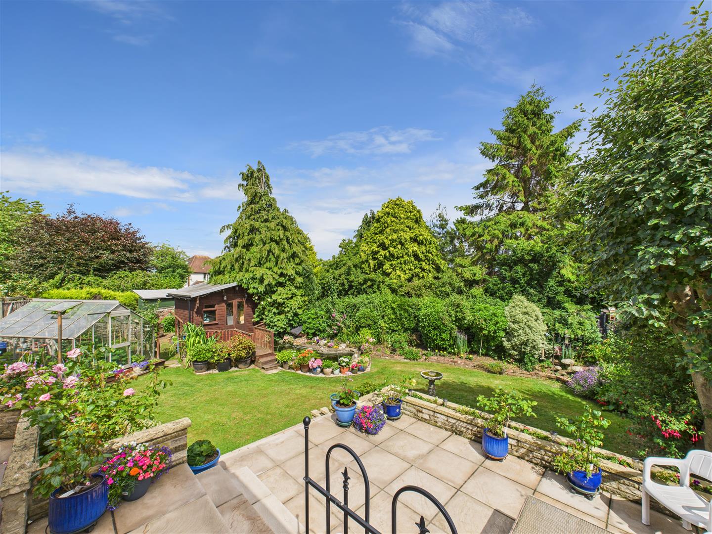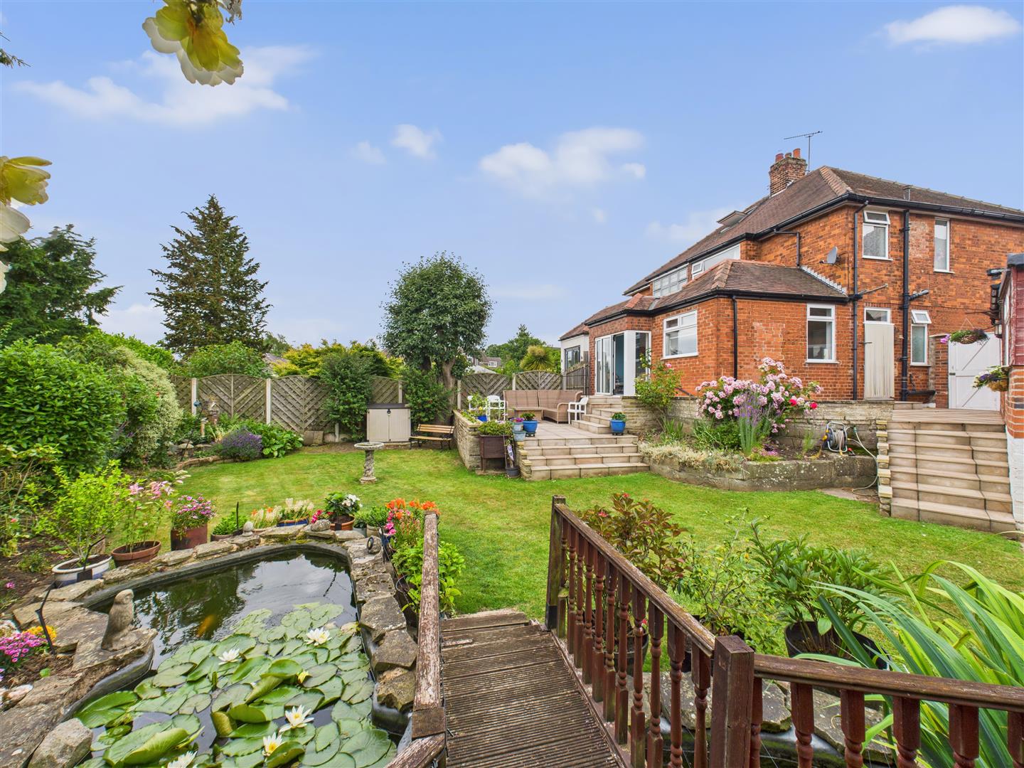 Outside - Outside, a driveway extends to the front and side, providing ample off-street parking and leading to a detached garage. Beyond the garage lies a superb outbuilding with power and light, perfect for a home office, and even additional storage beneath. The garden itself is a standout feature, offering exceptional privacy with its extensive patio, steps down to a lawn, attractive planted borders, and a picturesque fish pond with a decked bridge leading to a summerhouse.