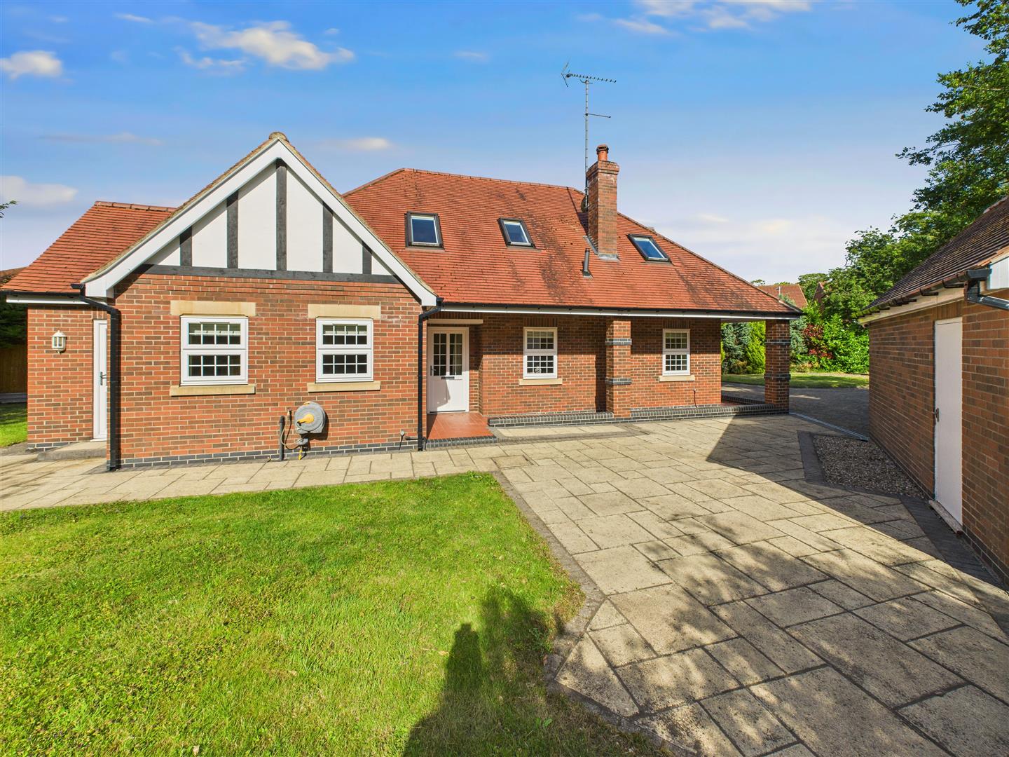 Outside - The property is set back from Swanland Road with access serving both Locks Lodge and Cleeve Lodge. The property itself is set behind an automated sliding gate with brick pillars which open to a gravel and block set forecourt providing excellent parking and access to the detached brick and pitched tiled roof garage. There is a lawn to the front with further lawn extending to the side and rear of the property complemented by a patio area.