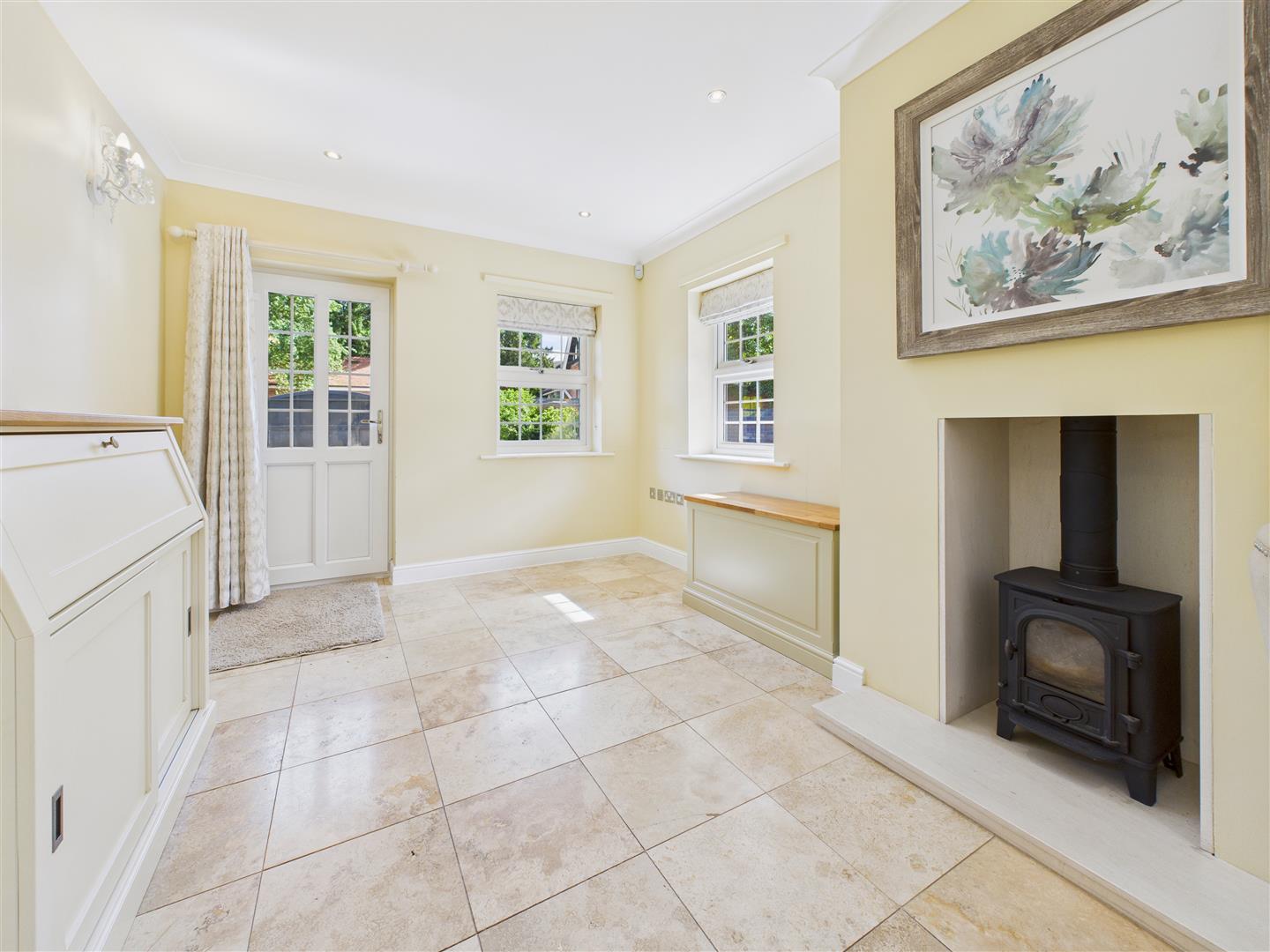 Lounge - Comprising a log burner with marble hearth and mantle surround, and two windows to the front elevation. Quality wood flooring.