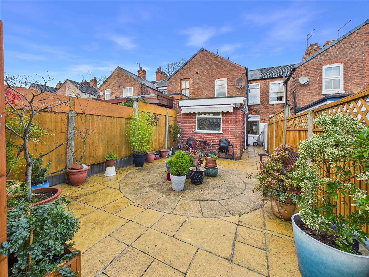 Outside - The exterior has been designed for low maintenance, featuring a paved garden to the front and a south-facing rear garden with attractive paving, providing a quiet outdoor space with a high degree of privacy.