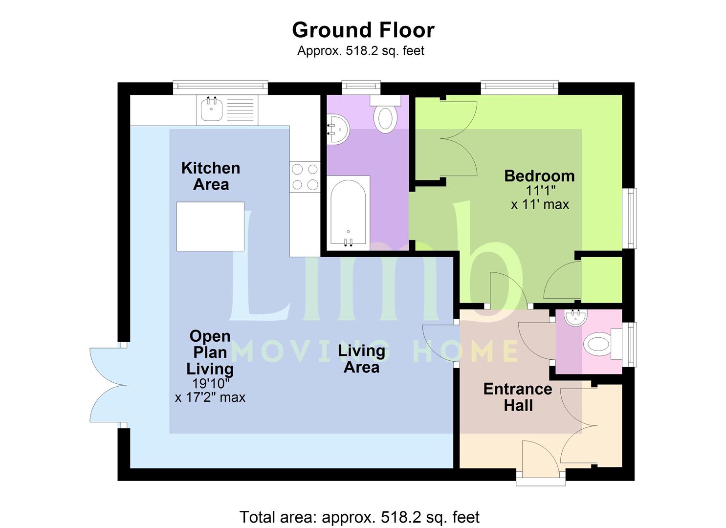 Open Plan Living - 6.07m x 5.26m approx (19'11" x 17'3" approx) - Spacious open plan living area with versatile space suited for a lounge, dining area and kitchen. This L-shaped room is of stylish, contemporary design with French doors leading onto the courtyard patio. Immaculately presented, the lounge and dining blend into:
