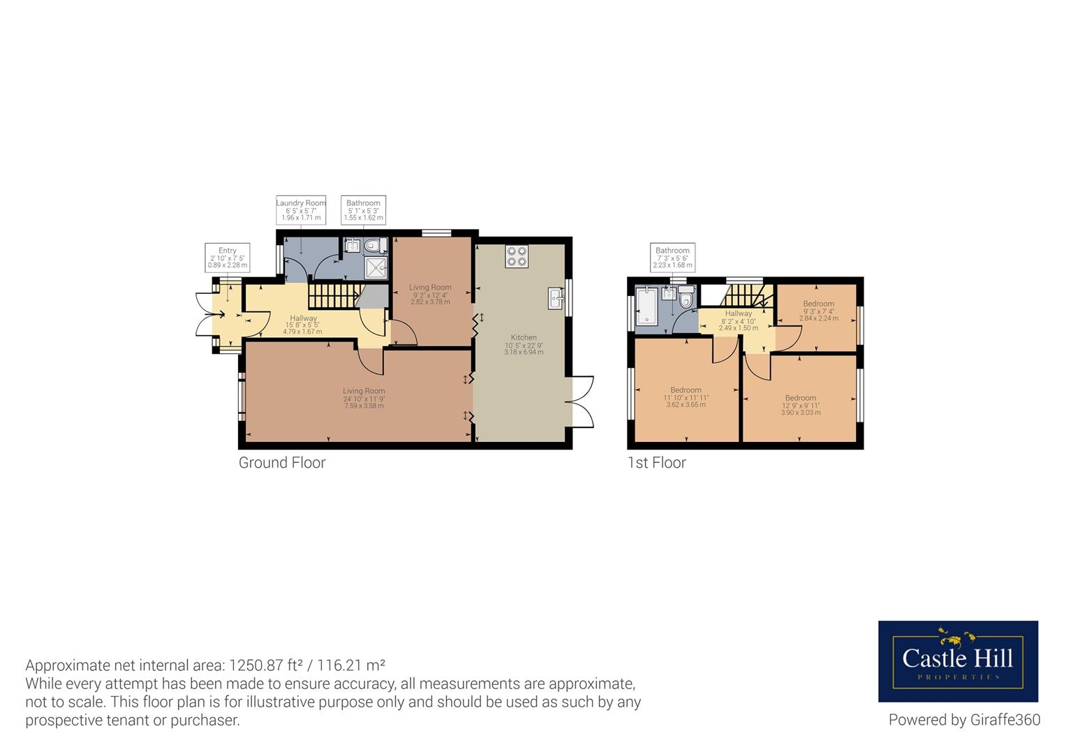 The ground floor comprises of a long reception room, modern fully fitted kitchen with dining area, a second reception room, utility room, under stairs storage and shower room. The first floor comprises of 2 large double bedrooms with built in wardrobes great for storage, and a large one bedroom.
