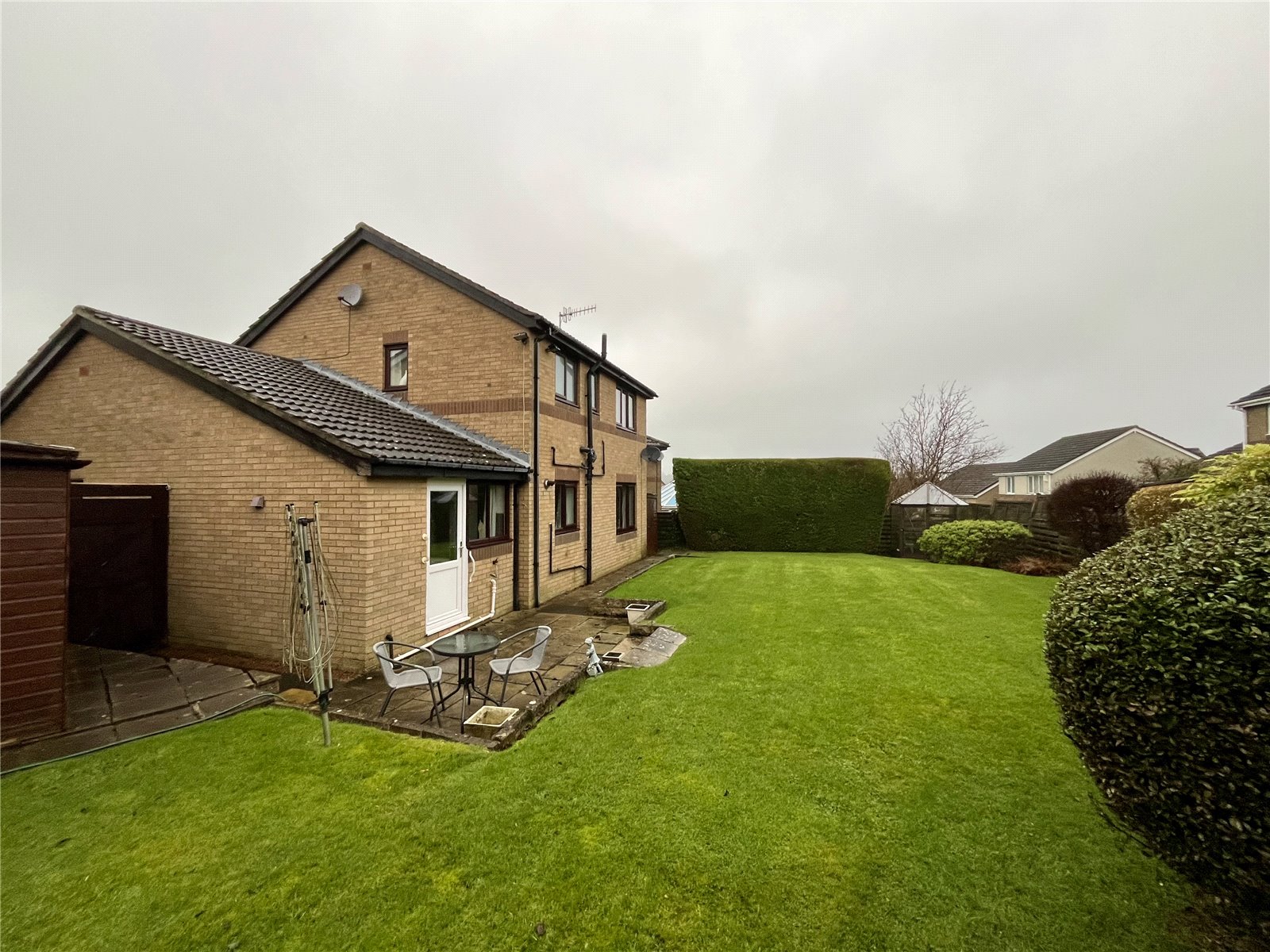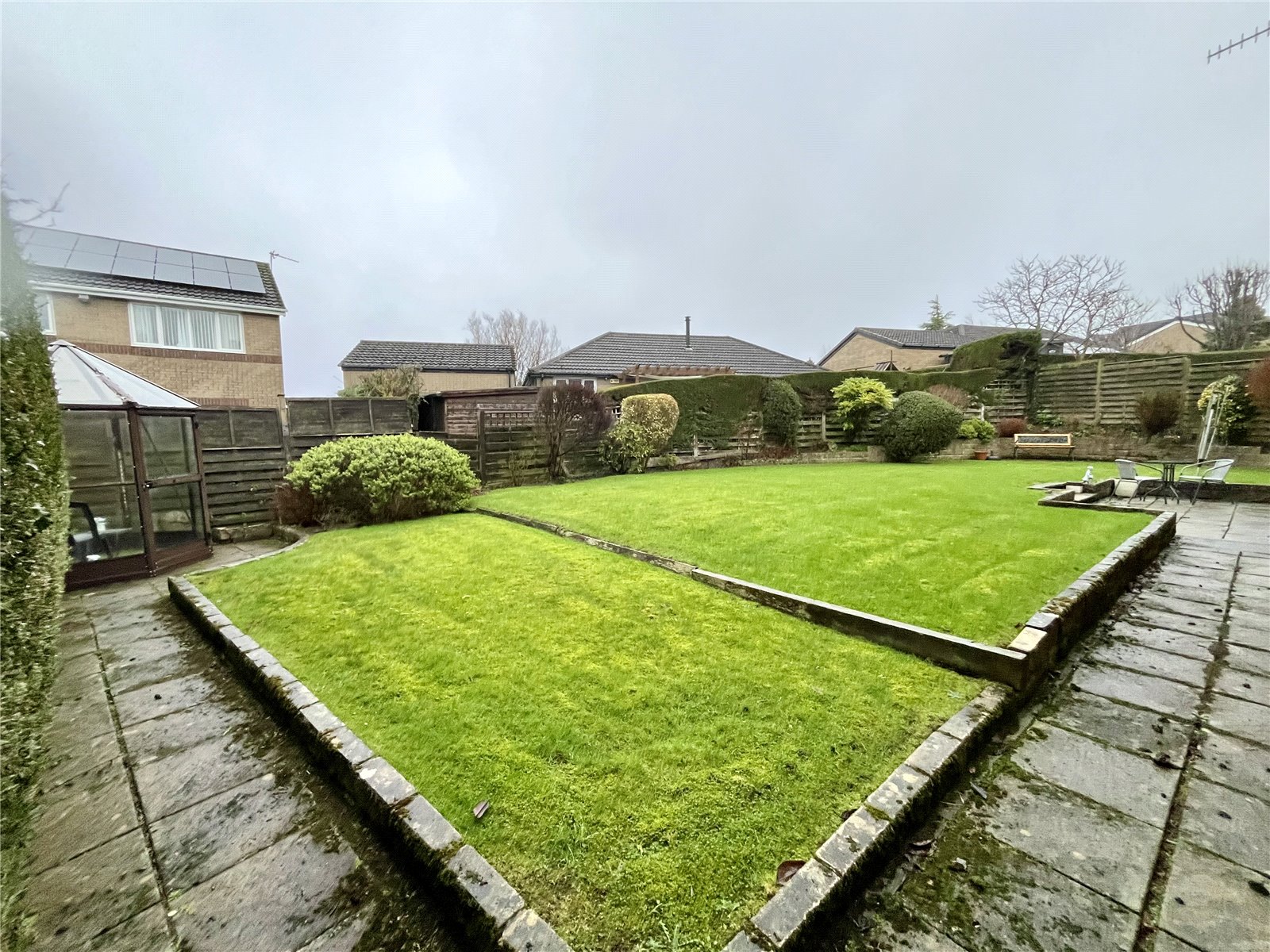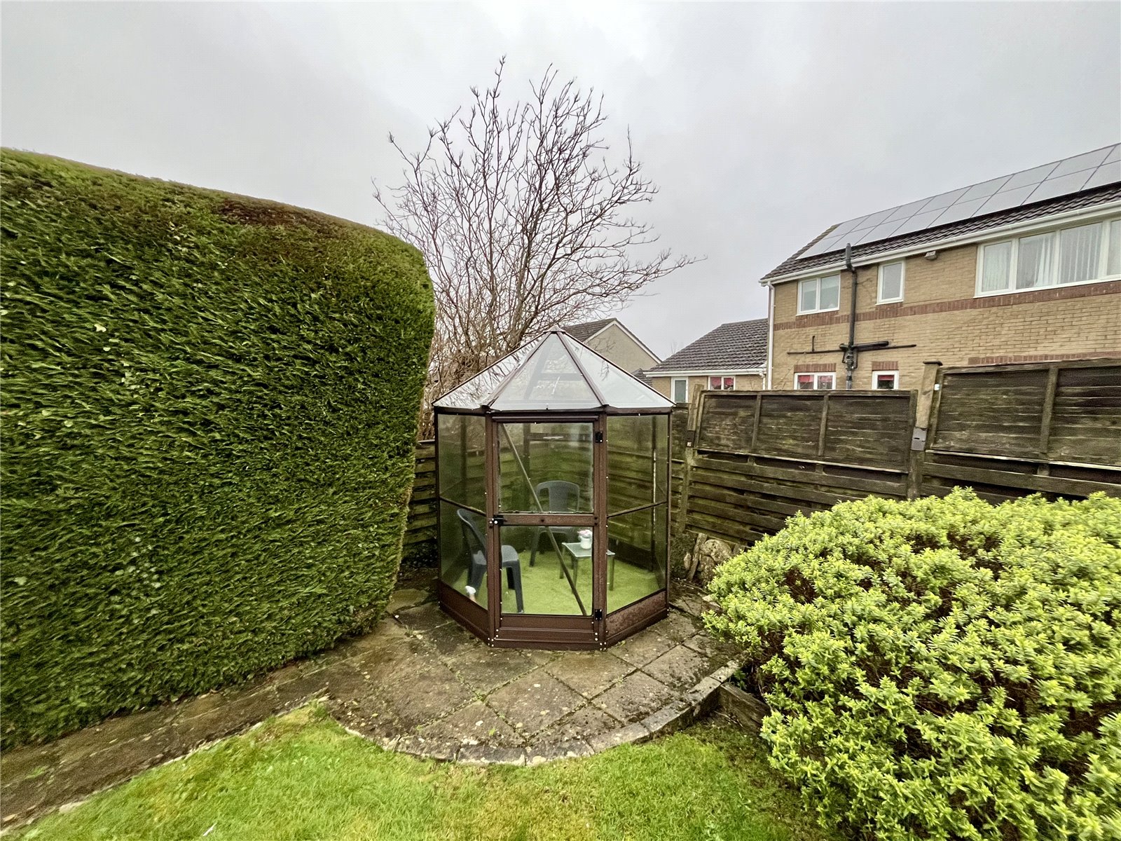 To the front, but mainly the rear, are level gardens with lawned areas, bushes and shrubs surrounding. Patio area.
