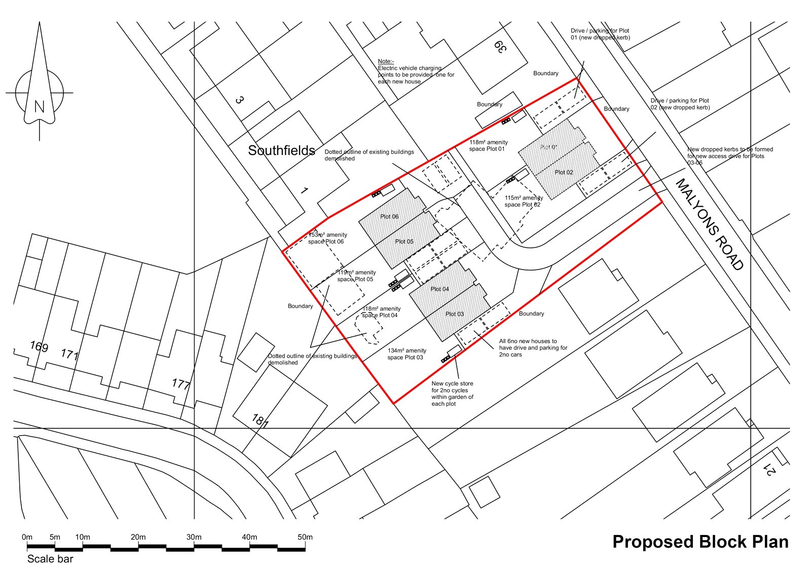 - Planning Permission Granted for the demolition of existing house and construction of 6 new 3 bedroom self-build/custom-build dwellings