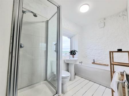 Bathroom - 1.70 x 2.82 (5'6" x 9'3") - Modern family bathroom with UPVC double glazed window to the rear aspect. Shower cubicle, bath, wash hand basin and WC. Extractor. High level built-in storage cupboard. Floor boards. Radiator.