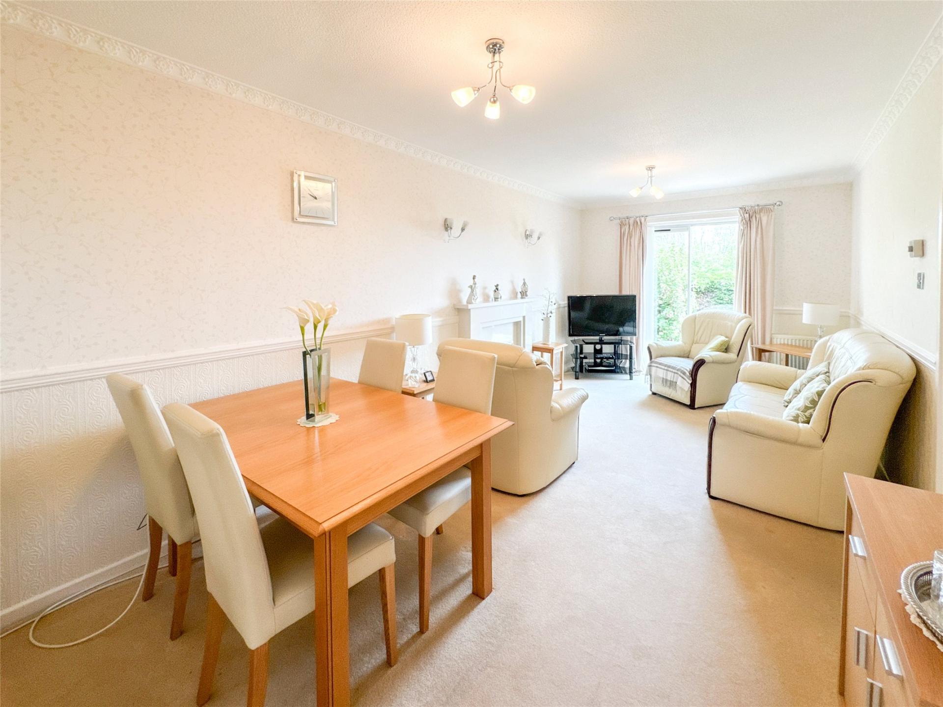 The interior features a generous lounge/diner, complete with a feature fireplace and sliding patio doors that open onto the rear garden. The fitted kitchen includes built-in cooking appliances, ensuring both style and practicality. Both bedrooms benefit from fitted wardrobes while a modern shower room completes the layout.