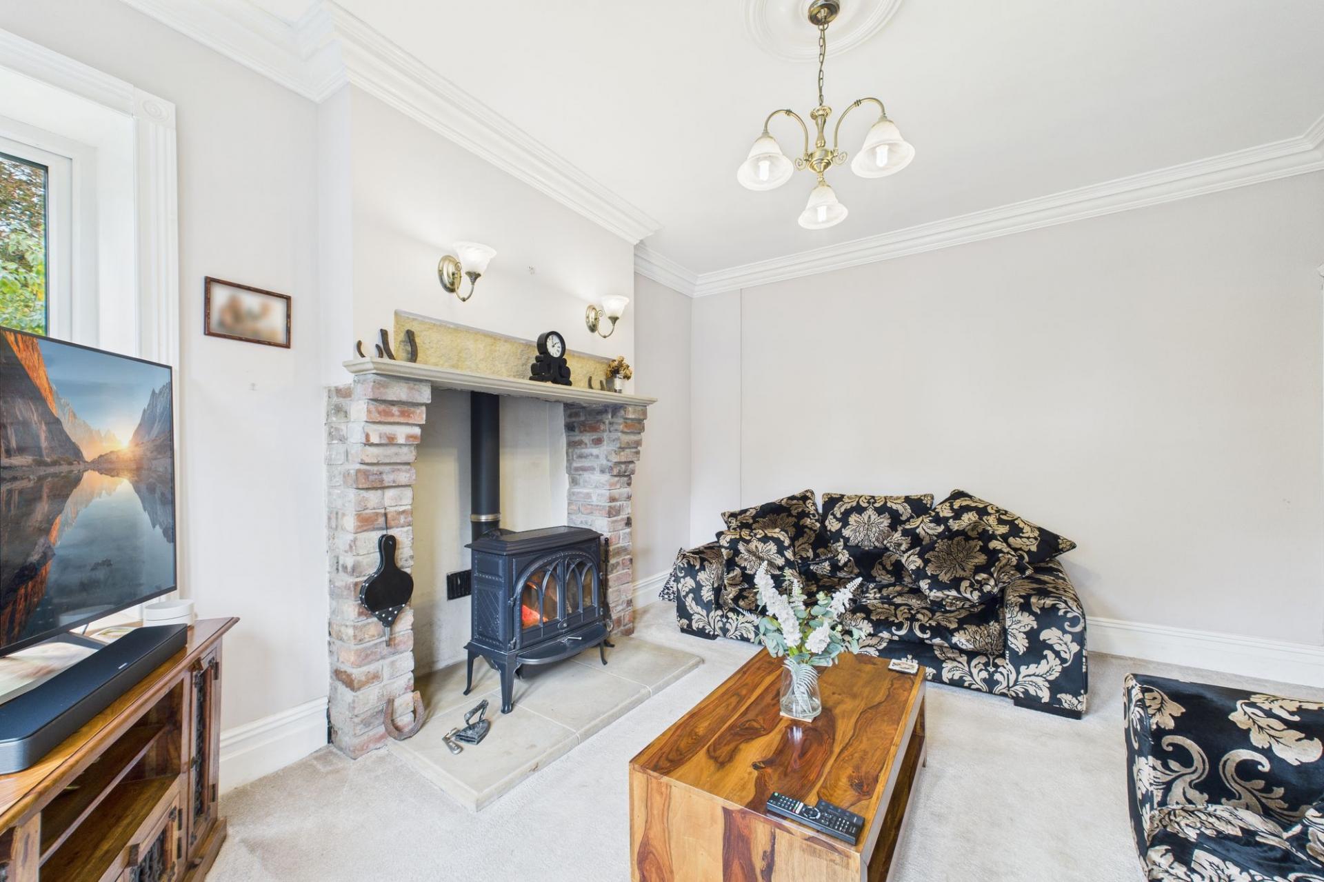 The interior is thoughtfully laid out and beautifully presented, featuring spacious, flexible accommodation throughout. On the ground floor, you'll find a welcoming entrance hall, an elegant lounge with a feature fireplace, a charming dining room with French doors leading to the garden, and a cosy breakfast room. The stylish kitchen, complete with slate flooring and a Rangemaster cooker, flows seamlessly into a practical utility area and a convenient WC. Character features such as wood-burning stoves, high ceilings and decorative mouldings add to the charm of the property.