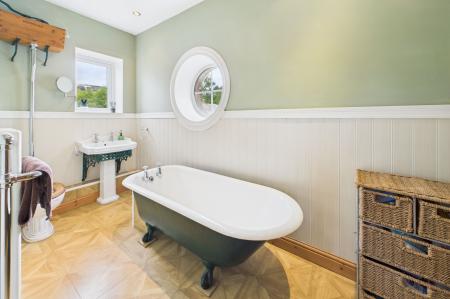 Upstairs, there are three generously sized double bedrooms, including a master with an en-suite shower room. A well-appointed family bathroom with a classic period-style suite completes the first floor.