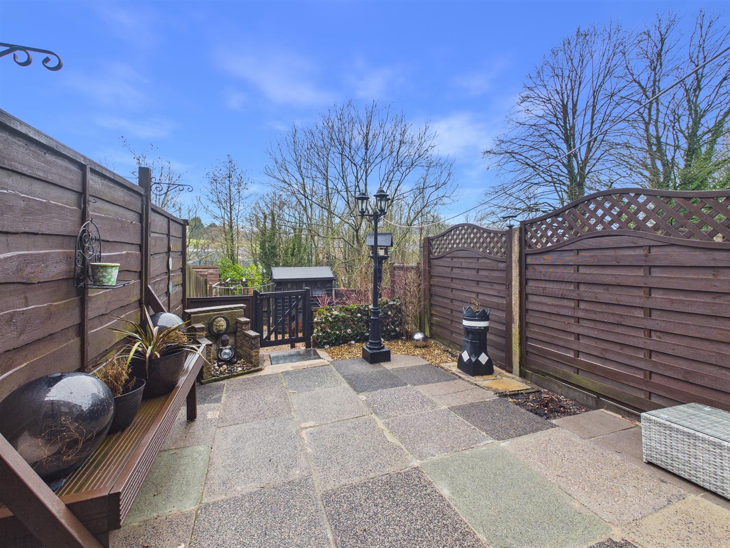 Garden - Paved garden enclosed by fencing. Steps to shingle area with shed and bin store. Outside tap and lighting.