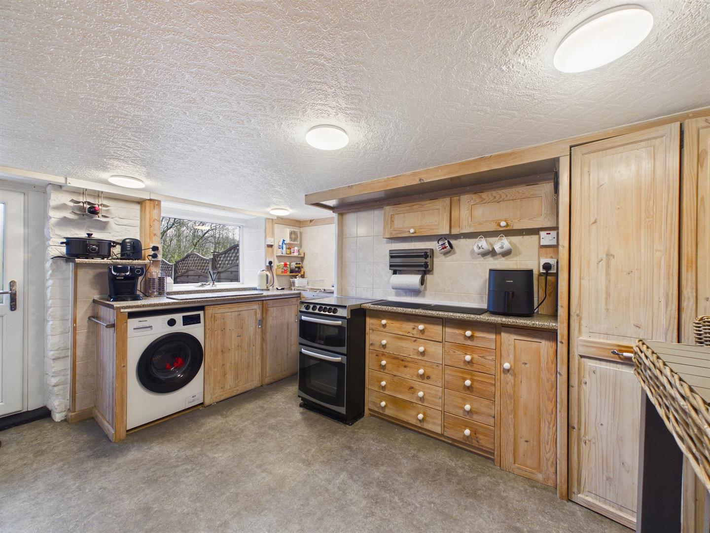 Kitchen - 4.27m x 3.12m (14'0" x 10'3") - A range of hand built cupboards and drawers. Stainless steel sink unit with mixer tap. Tiled splashbacks. Space for washing machine, dish washer, tumble dryer, gas cooker and fridge. Vinyl flooring. Radiator. Half glazed uPVC door to rear and window to rear.