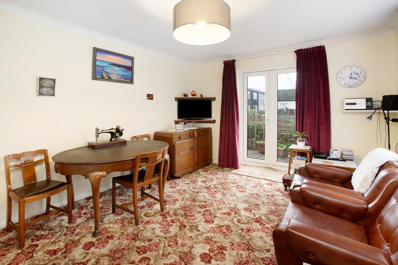 LIVING ROOM: A bright and comfortable reception room enjoying pleasant outlooks over the garden. The room is well proportioned and easily accommodates both seating and dining furniture, with French doors opening directly onto the garden, allowing plenty of natural light and a strong connection to the outdoor space.