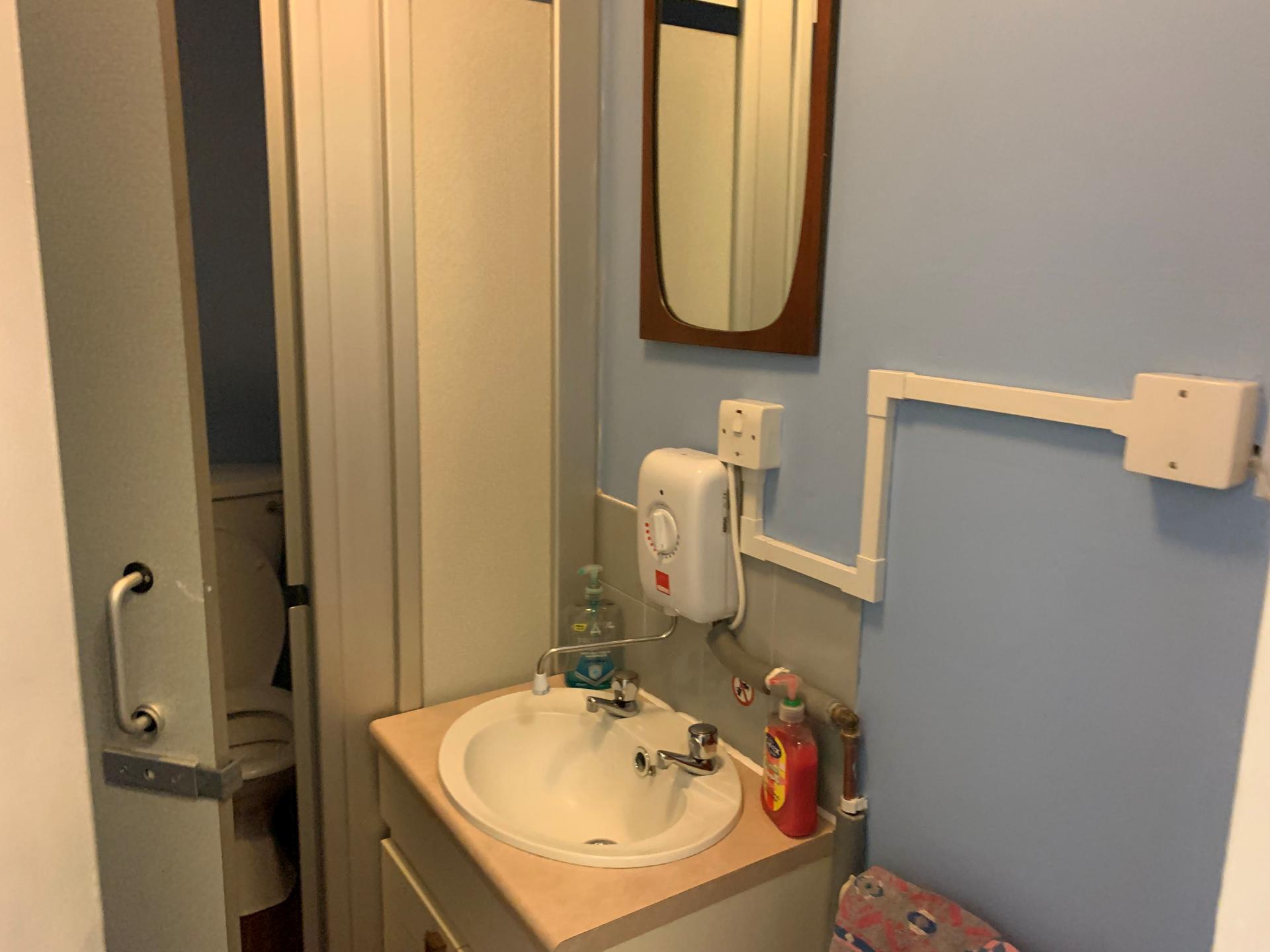 LADIES WC: Separate low level WC, wash band basin with water heater.