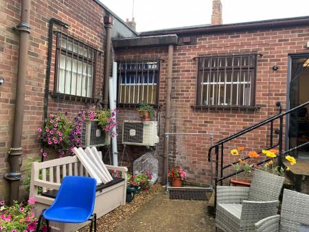 The main property comprises a 1960’s single storey building of brick, with front parapet wall façade, and mineral felt flat roof construction. The rear parts are also of single storey brick construction under a concrete roof. The property has double glazed windows, timber double doors to the front, and a steel door to the rear yard.