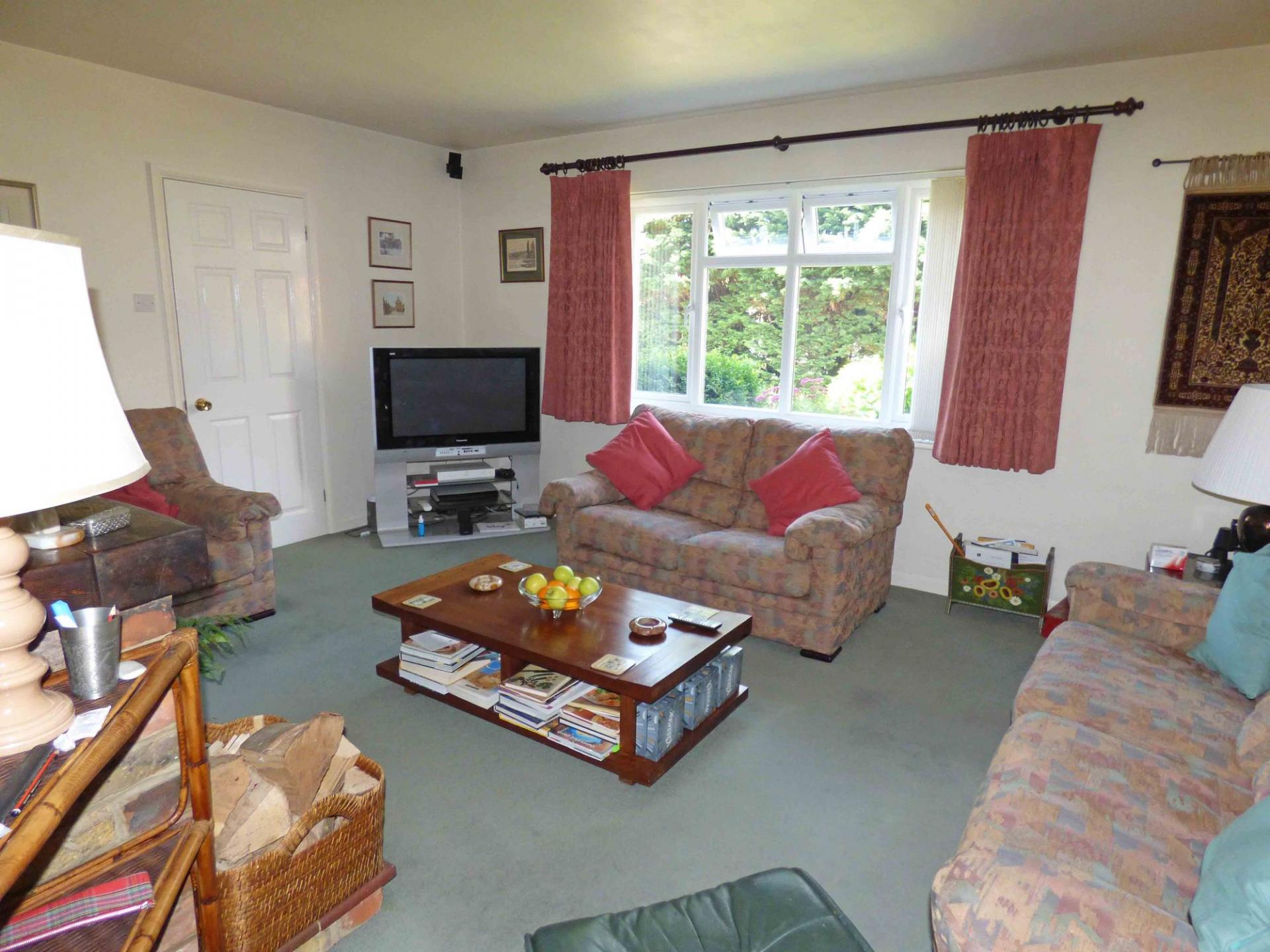 The sitting room, with an open fireplace, is at the front of the property and leads into the good-sized dining room and the conservatory beyond.