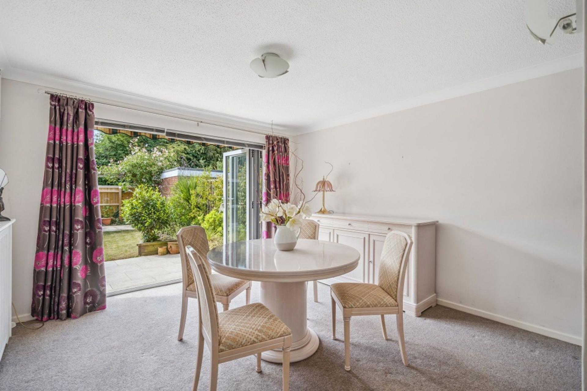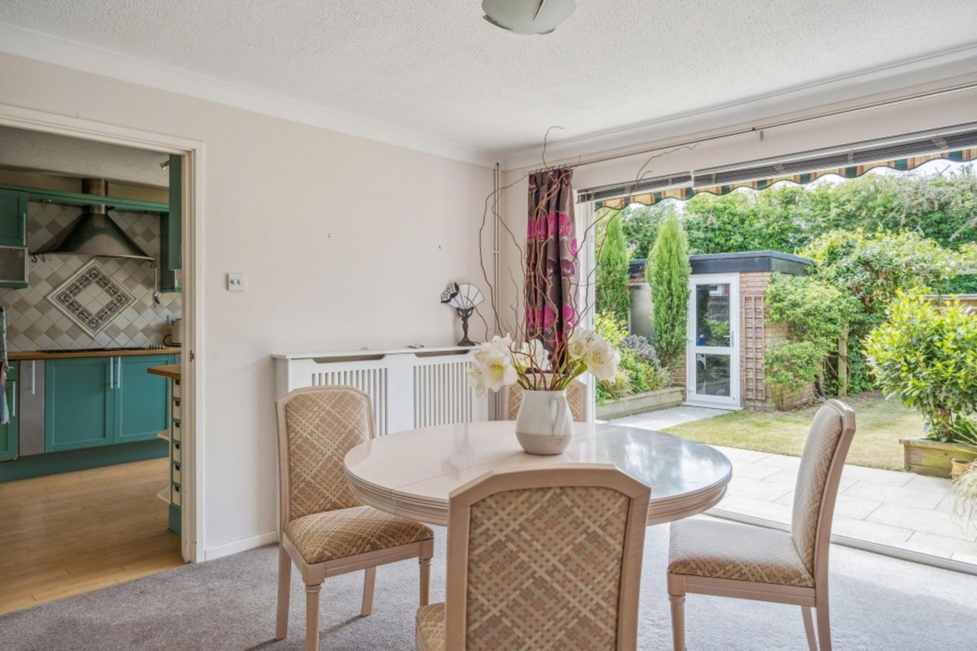 The door to the through lounge-dining room is on the right of the front door. The lounge area has a double-aspect bay window overlooking the front and a feature chimney in the centre of the room dividing the two areas which is fitted with a gas-coal effect fire. Space either side of the chimney leads through to the dining room which has bi-fold doors opening to the patio and garden beyond and a door through to the kitchen.