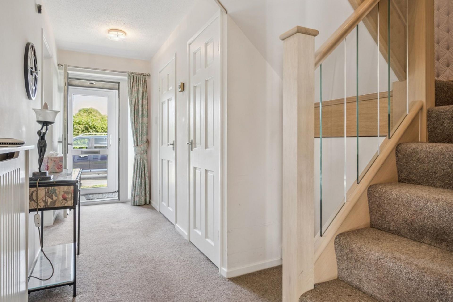 The property is accessed via a brick and sealed-unit porch via a front door into the hallway. Immediately on the left is the shower room which is fitted with a white suite comprising of back-to-the wall W.C. and basin with a quadrant shower and part-tiled walls. There is a generous coats' cupboard and smaller understairs' cupboard.