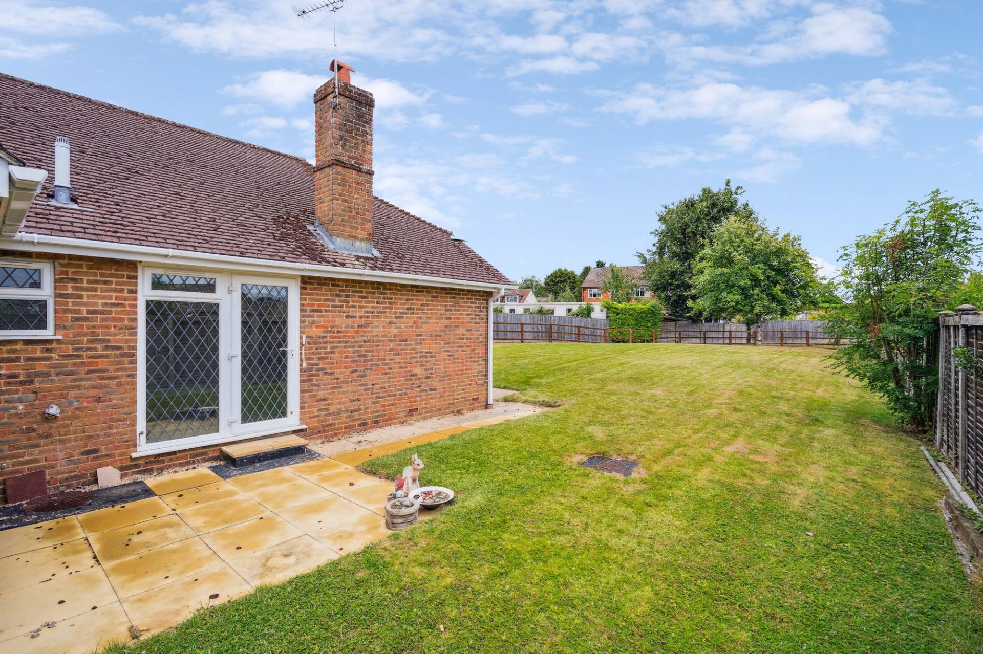 A particular feature of this pretty bungalow are the larger than average gardens. From the driveway and garage a lawned area with path and patio leads to a great size level lawn with picket fencing and mature trees. The space provides a blank canvas for the keen gardener, a wonderful games area for children or a perfect area for entertaining. Areas of lawn also border the side and front of the property.