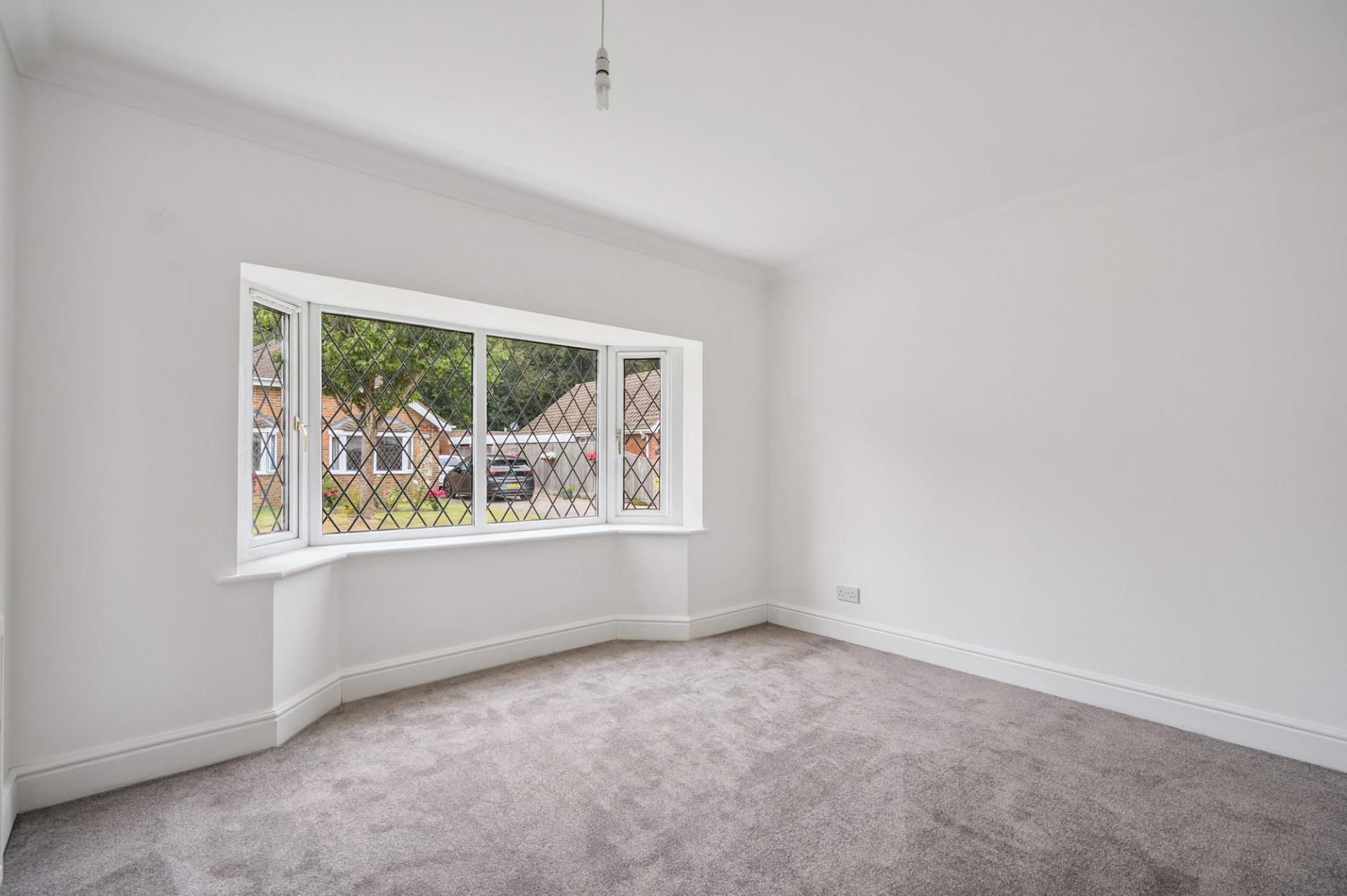 To the other end of the bungalow is firstly, the family bathroom with a three piece white suite including bath. The third bedroom is a small double and enjoys a front aspect. Bedrooms two and three are excellent double rooms with bay windows providing an abundance of natural light with the main bedroom benefitting from built in wardrobes and an en-suite shower room.