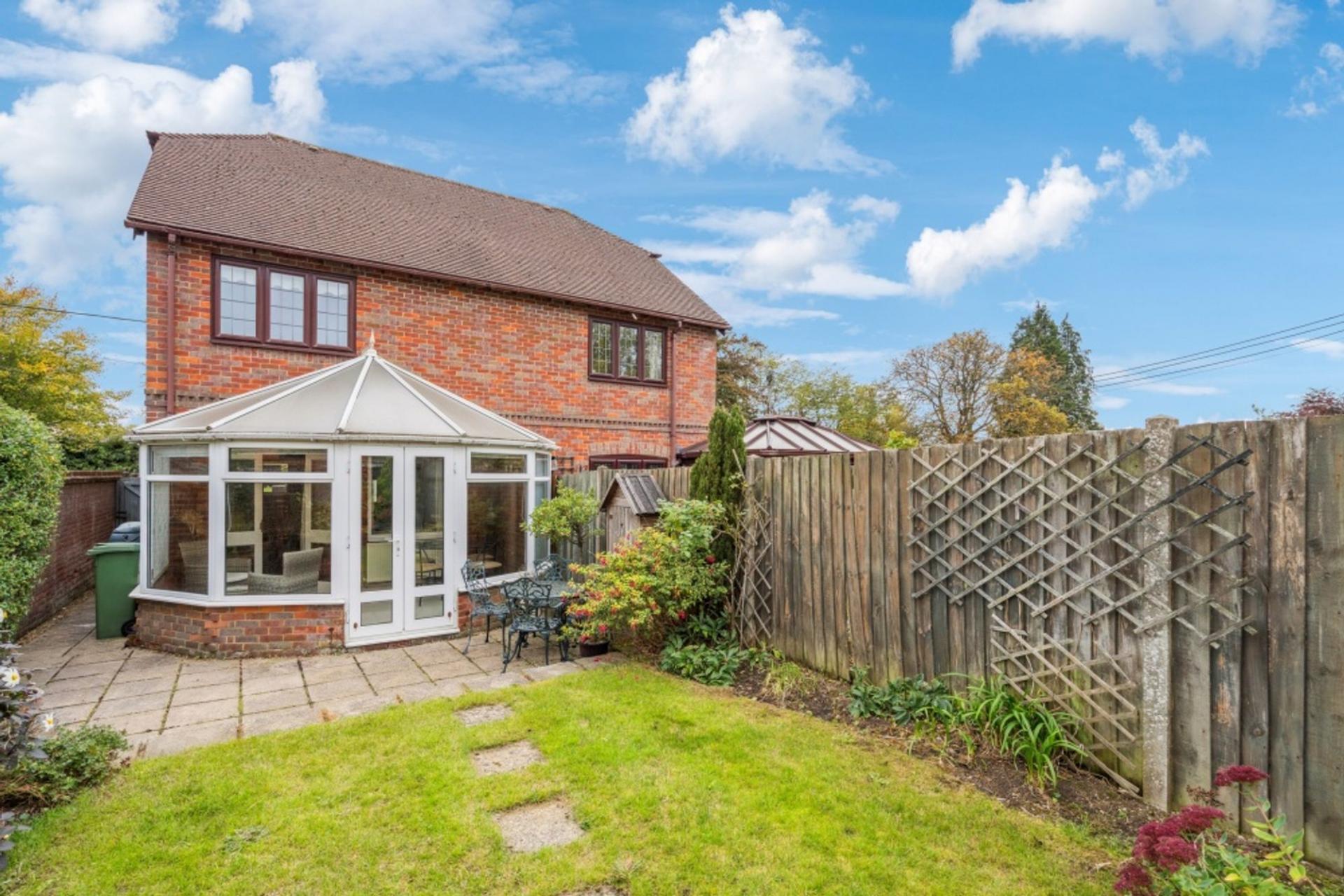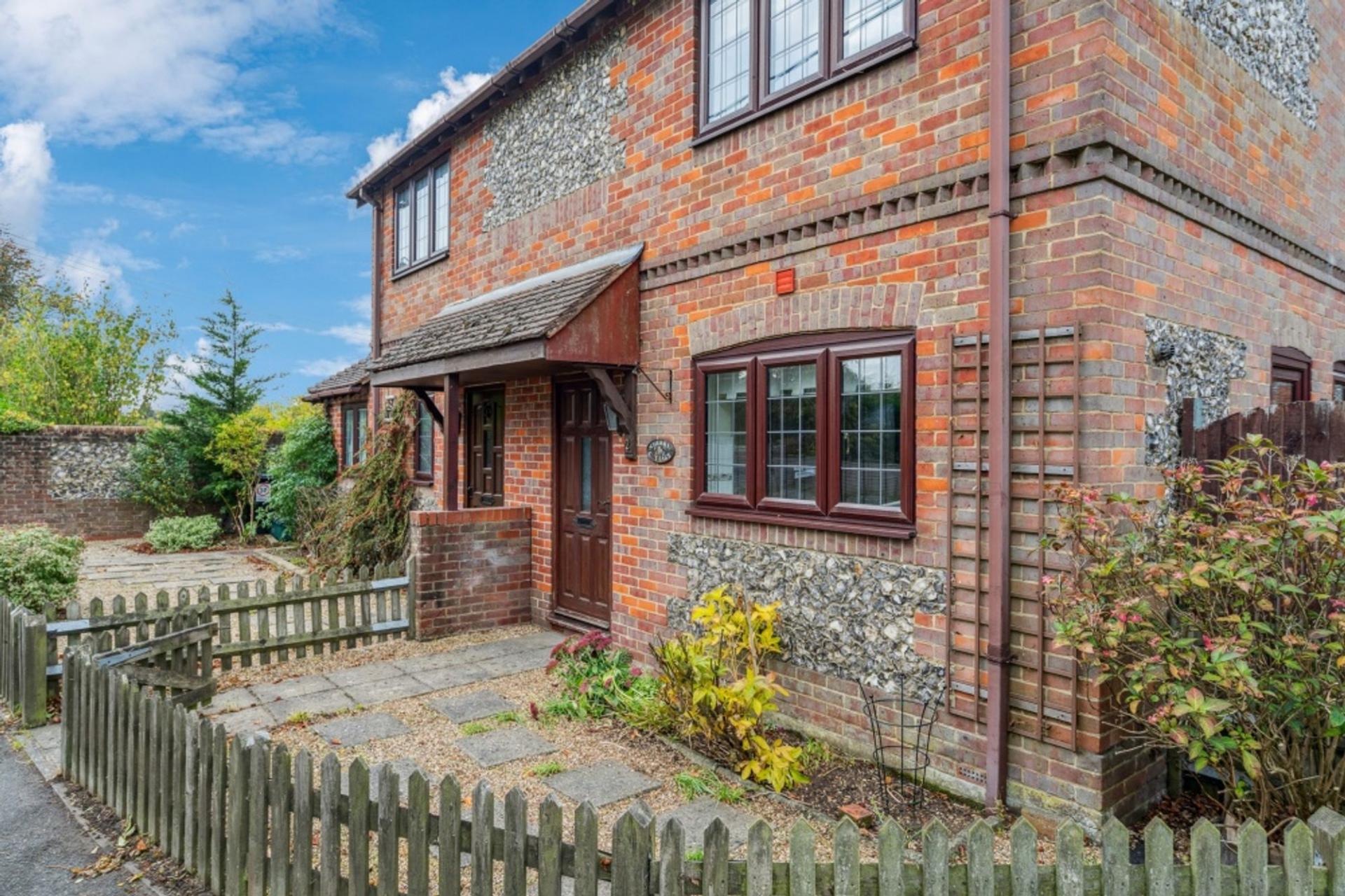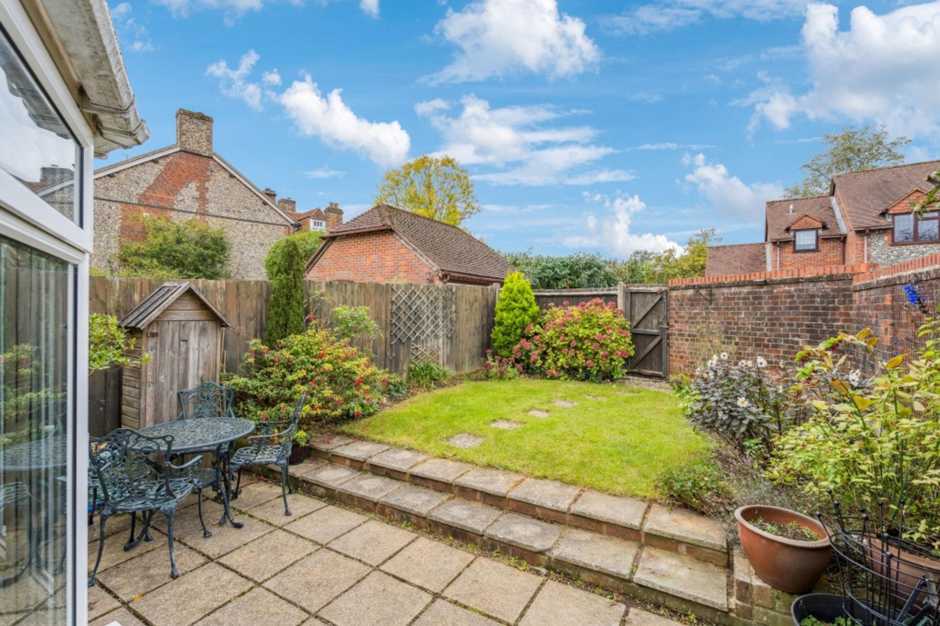 Outside, there is side access through the curved, brick and flint wall to an enclosed passage (with space for the bins) and a gate that leads to a path alongside the house to the back garden. The pretty, west-facing back garden is well-enclosed and has a patio, lawn and mature shrub and tree borders plus a gate to the rear.