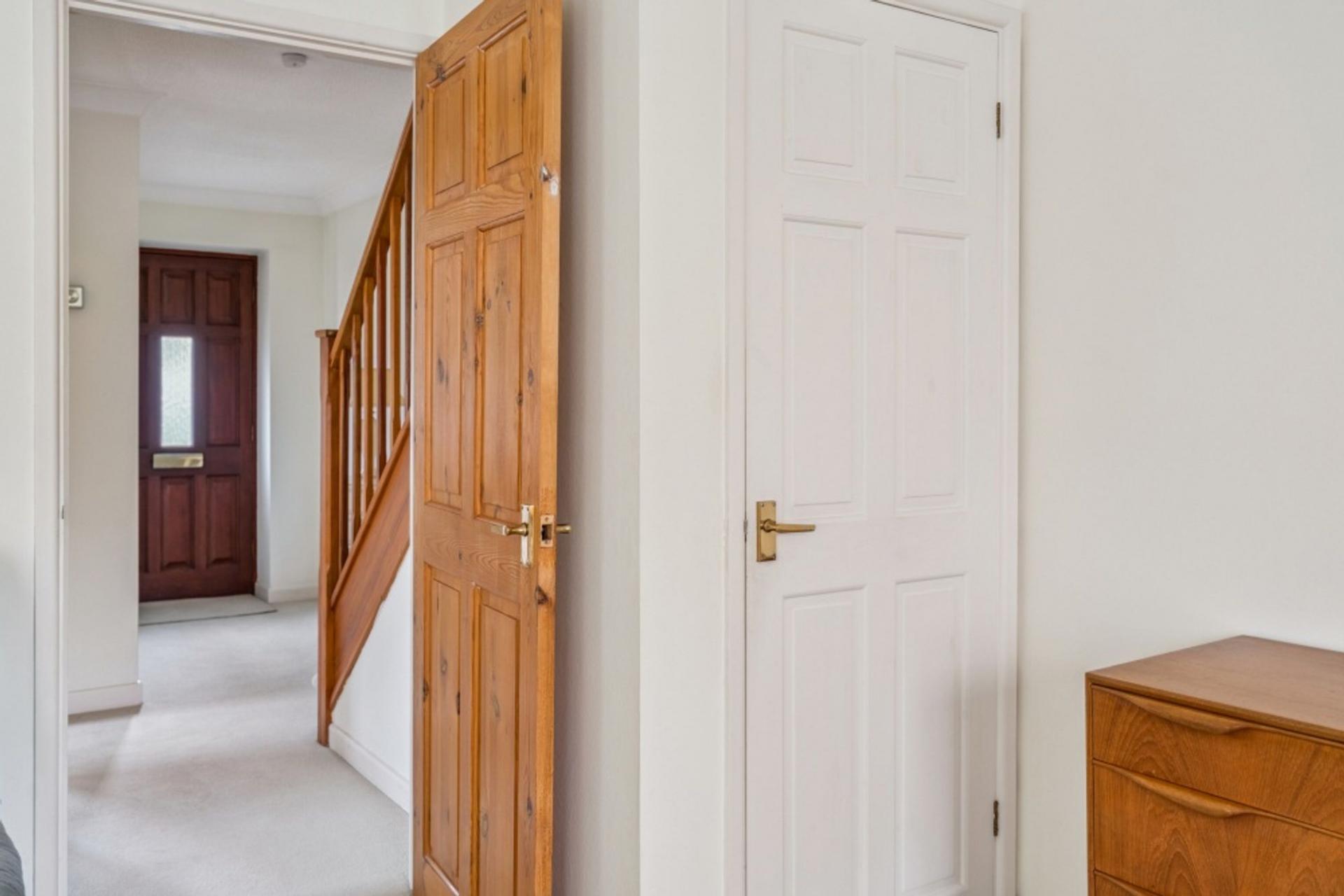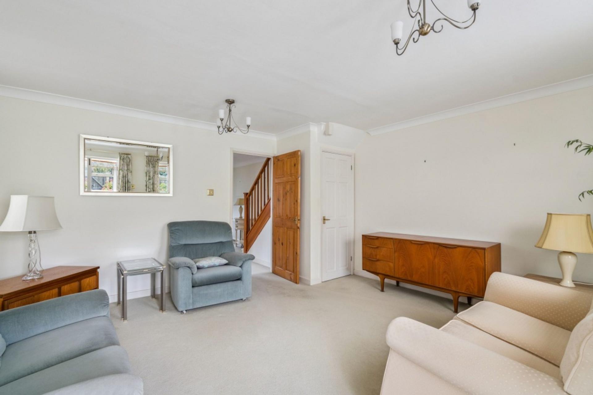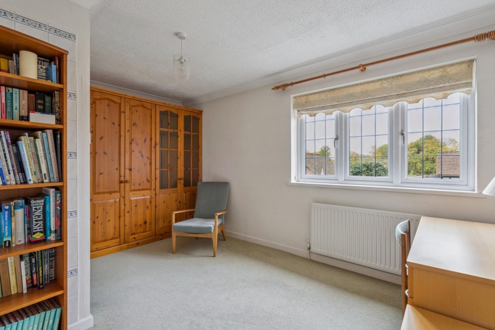 The sitting room runs across the rear of the house. It is double aspect with a window and French doors leading to the conservatory at the rear and with a pair of matching windows to the side. Storage is provided in the understairs cupboard.
