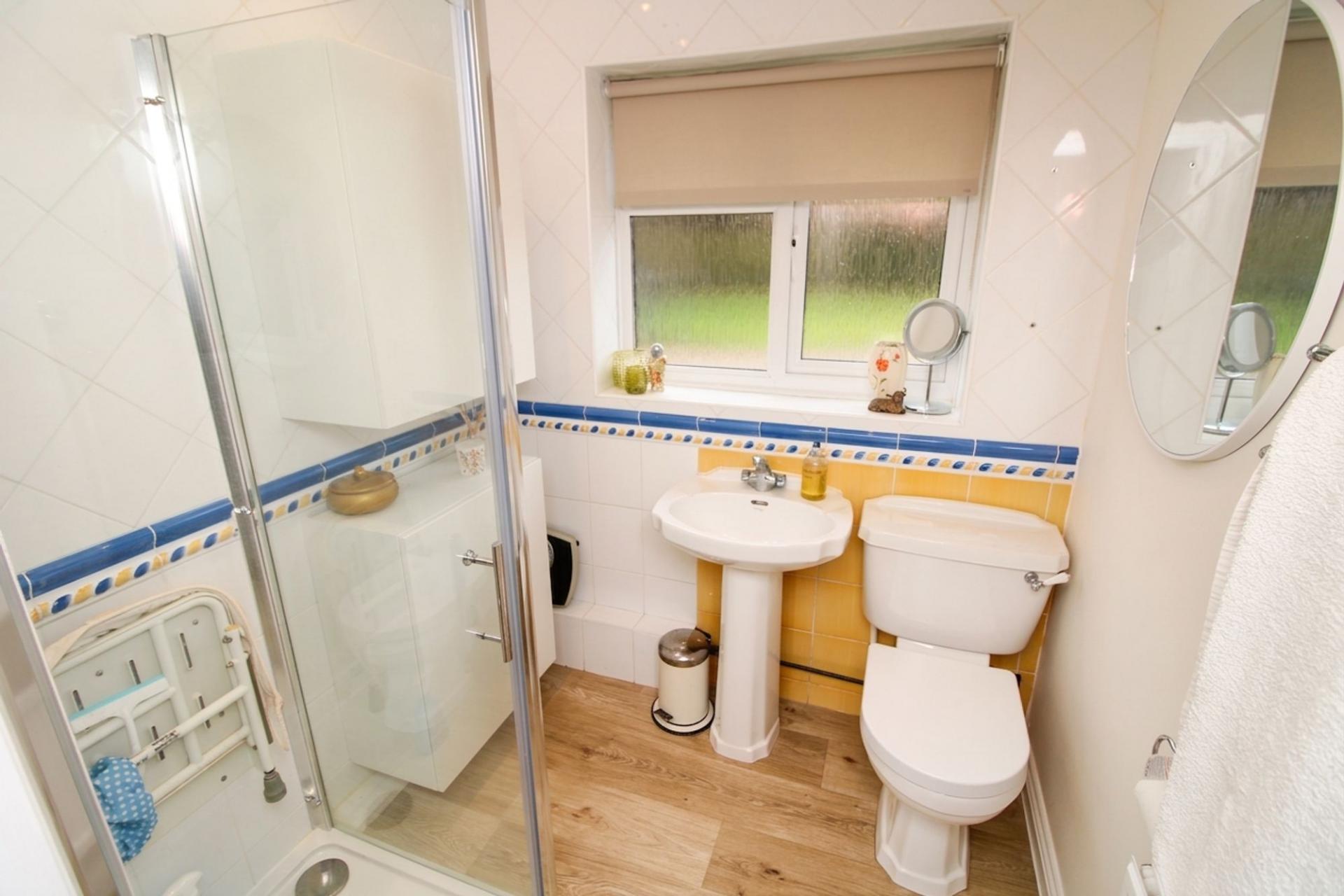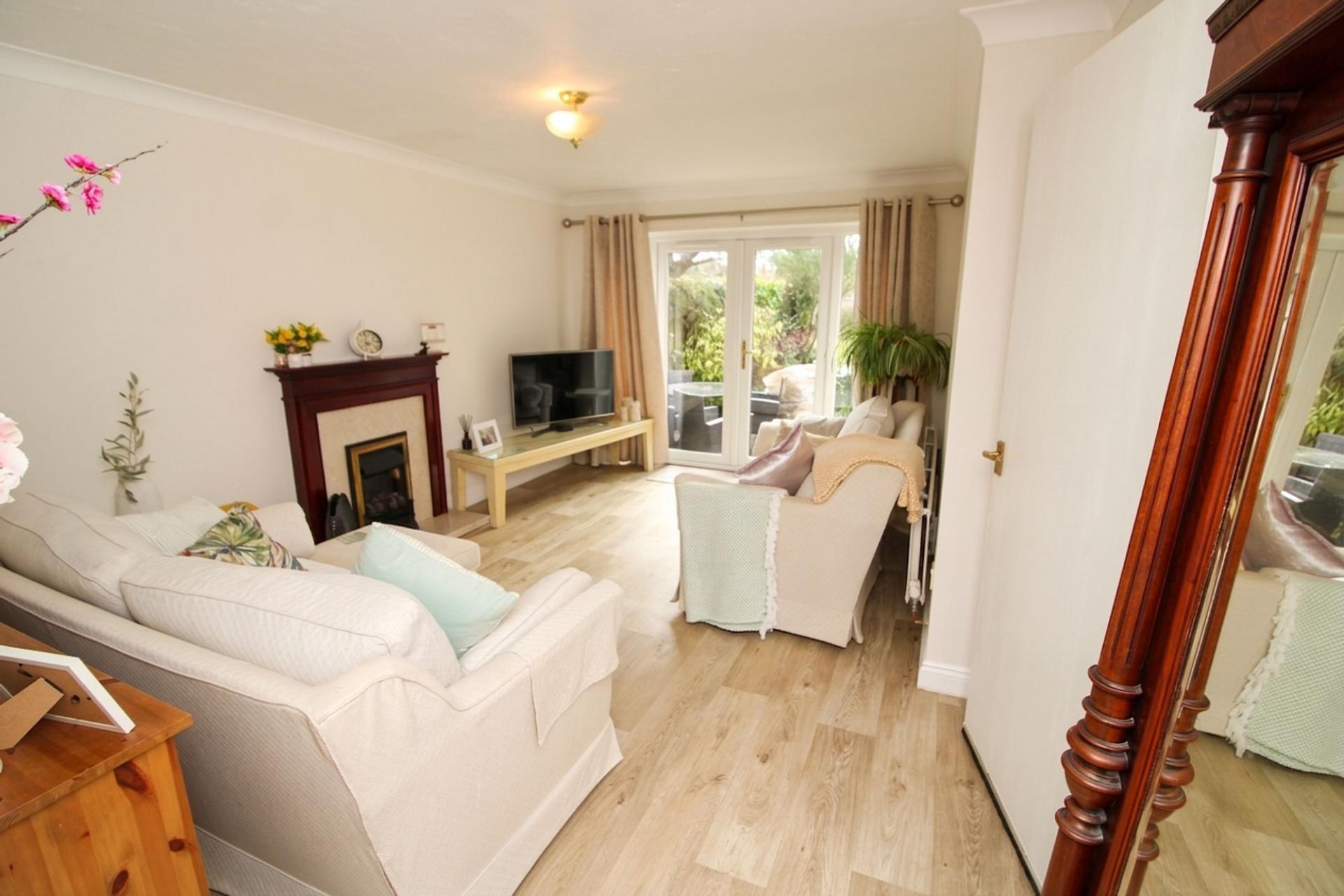 Situated within a peaceful and sought-after development exclusively for the over 55s, this well-presented semi-detached bungalow offers a comfortable and low-maintenance lifestyle with the added reassurance of a warden on-site and a 24-hour emergency pull cord system. The property is offered with no onward chain, ensuring a straightforward and stress-free purchase for prospective buyers. Internally, the bungalow features two well-proportioned bedrooms. The spacious living room is filled with natural light and provides direct access to the superb garden. The recently fitted flooring throughout the property adds a fresh and modern touch, complementing the neutral decor and allowing new owners to move straight in with ease. The kitchen is well fitted and a new shower has been installed in the shower room. Additional features include an allocated parking space for residents, as well as a practical garden shed for extra storage needs. Side access to the property further enhances the sense of privacy and independence.