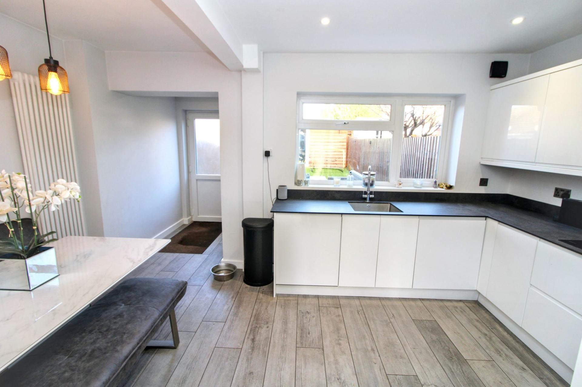 A beautifully presented, three bedroom, terraced house offering families a welcoming and modern, comfortable home. Having been recently modernised, this impressive house offers a ready to move in home with contemporary living and stylish environment. The entrance hall leads through to a good size living room, which is enhanced by a large, double glazed window to maximise the natural light. The open plan kitchen/breakfast room has been fitted with white wall and base units, integrated appliances and provides ample space for a seating area, making it perfect for everyday living and entertaining. Upstairs is split over two floors with three well proportioned double bedrooms and there are two modern bathrooms (one on each floor), each finished to a high standard ensuring family convenience. The property has been tastefully and neutrally decorated throughout and benefits from gas central heating, double glazing and car parking. This lovely house is ideally located for local amenities and good schooling and so an early viewing is highly recommended to fully appreciate its quality and appeal.