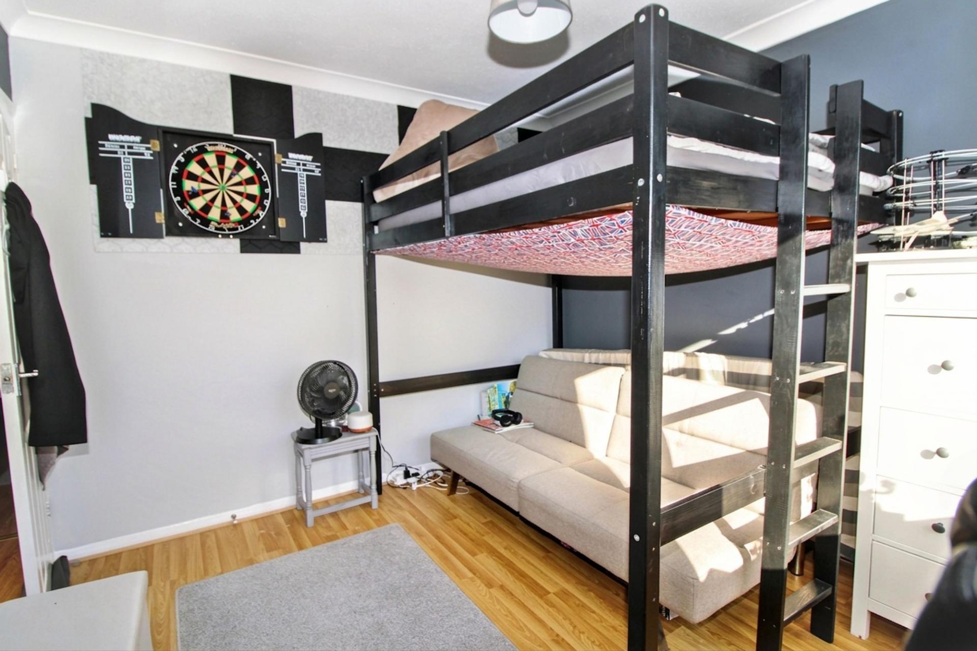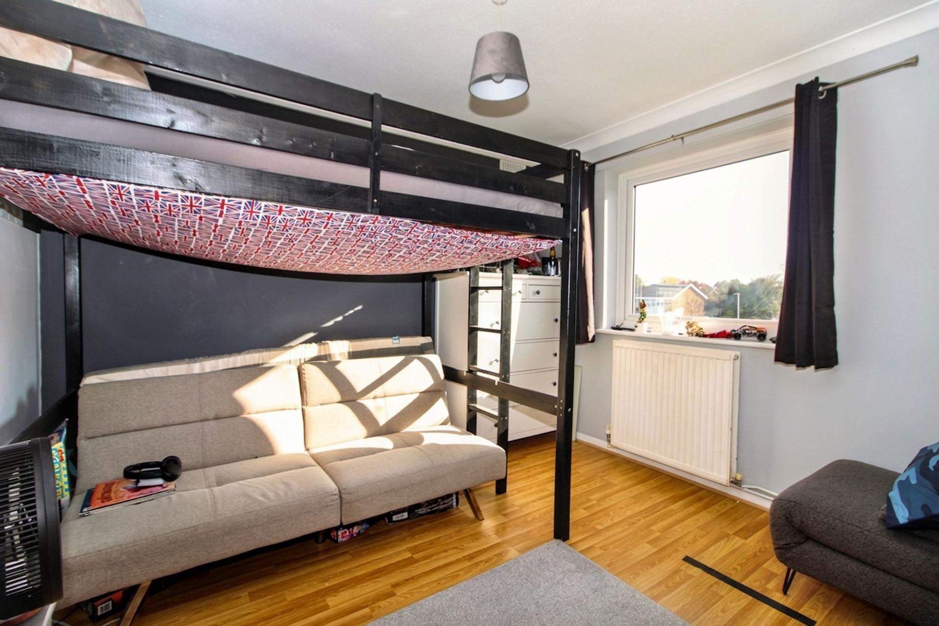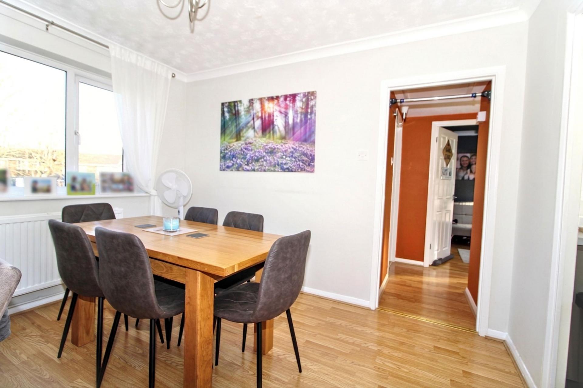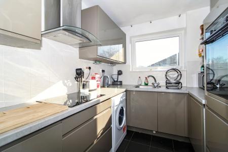 This beautifully presented, three-bedroom, first floor flat offers a superb opportunity for buyers seeking spacious and versatile accommodation in a desirable location. The flat offers its own private access, which leads to a welcoming entrance hall with a large storage cupboard. The generous reception room provides an ideal space for both relaxing and entertaining, with ample natural light and plenty of room for both a seating and a dining area. The modern kitchen is thoughtfully designed with a range of fitted units and integrated appliances with plenty of worktop space. Each of the three bedrooms are well-proportioned, with the principal bedroom benefiting from built-in wardrobes and space for additional furnishings. The second and third bedrooms offer flexibility for use as bedrooms, a home office, or even a separate dining room depending on your needs. The bathroom is fitted with a white three piece suite, including a bath with shower over, a wash basin, and a WC. The property also benefits from double glazing throughout, gas central heating, a garden that is shared with only three other flats and a garage. The location is particularly convenient, with excellent transport links nearby, as well as a range of local shops, cafes, and amenities within easy reach. The property is offered in excellent condition throughout, and early viewing is highly recommended.