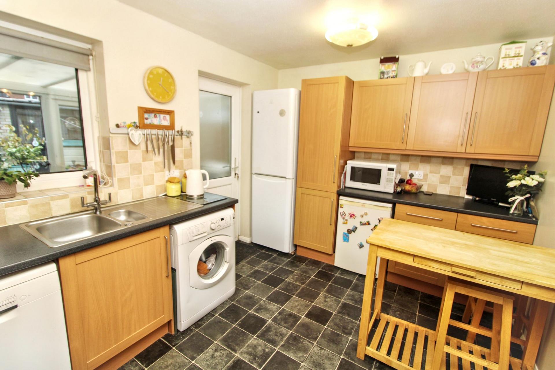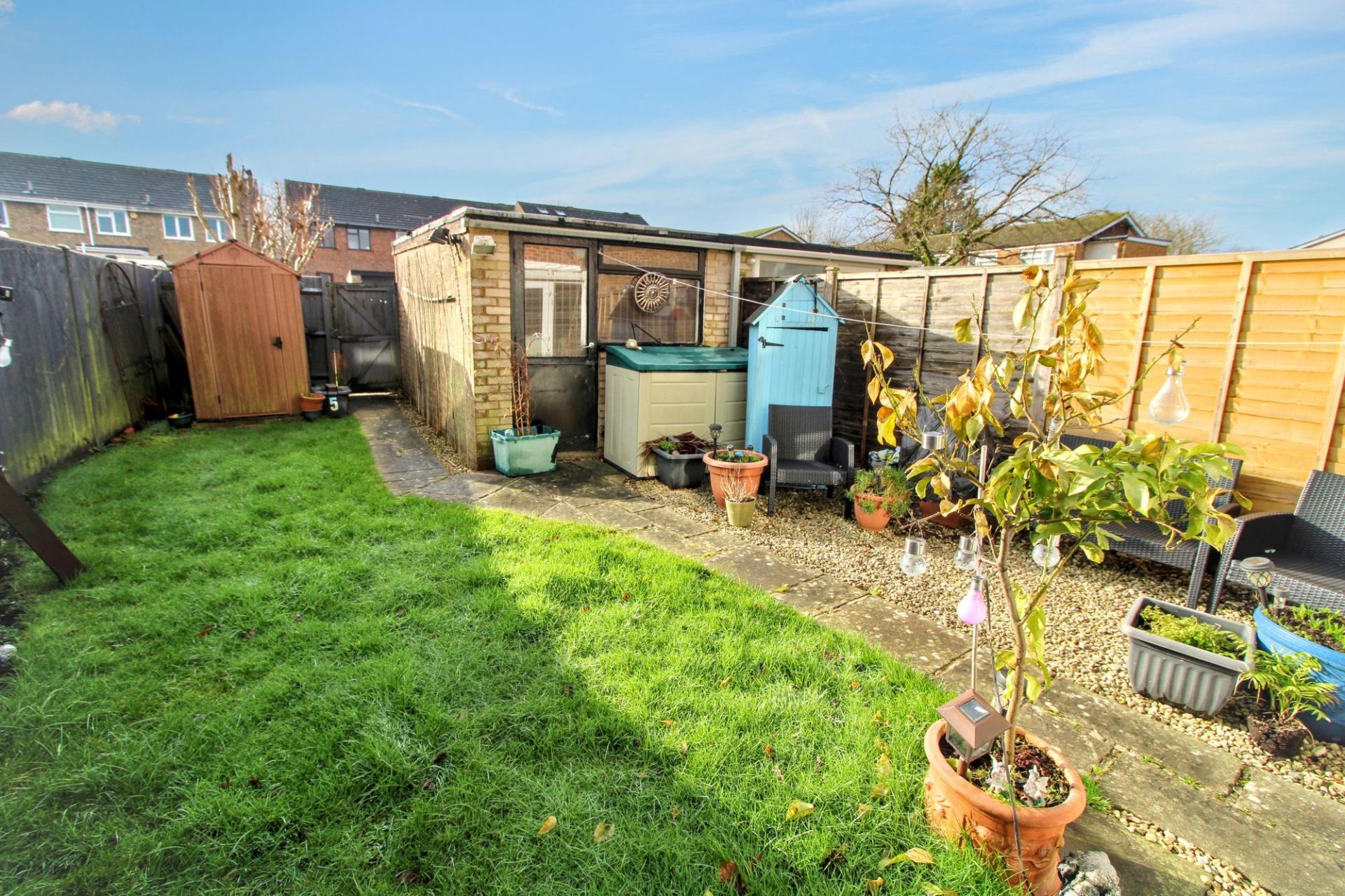 This well presented two bedroom end of terrace house is set in a peaceful location on a quiet walkway, offering an ideal home for first time buyers, young families or those seeking a comfortable downsize. This property has been well maintained, while offering scope to modernise and potentially convert the loft(STPP) which would provide the opportunity for an additional bedroom or dedicated workspace. There is a bright and spacious living room that leads through to a kitchen breakfast room featuring ample storage in the wall and base units, worktops and space for a table. The conservatory provides an additional reception room filled with natural light and is suitable for use as a dining space, home office or kids playroom. Upstairs you will find two generously sized double bedrooms, each offering fitted and built in cupboards. The bathroom comprises of a three piece suite with the bath having a shower overhead. To the outside front of the house it is mainly laid to lawn with a path leading to the front door and to the rear is a private garden which again is mainly laid to lawn, gated to the front and back as well as a seating area. There is also the benefit of a single garage (with electricity) and car parking for several cars. The property is situated in a great location within easy reach of good schooling, transport links and local amenities which include shops, library, doctor and dentist surgery.