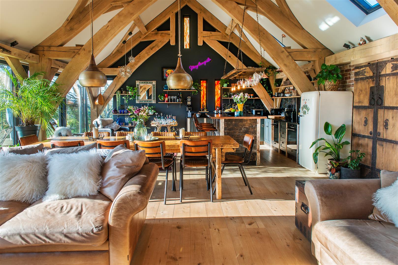 - Set in 1.2 acres with landscaped gardens and multiple outbuildings including 9m x 9m barn