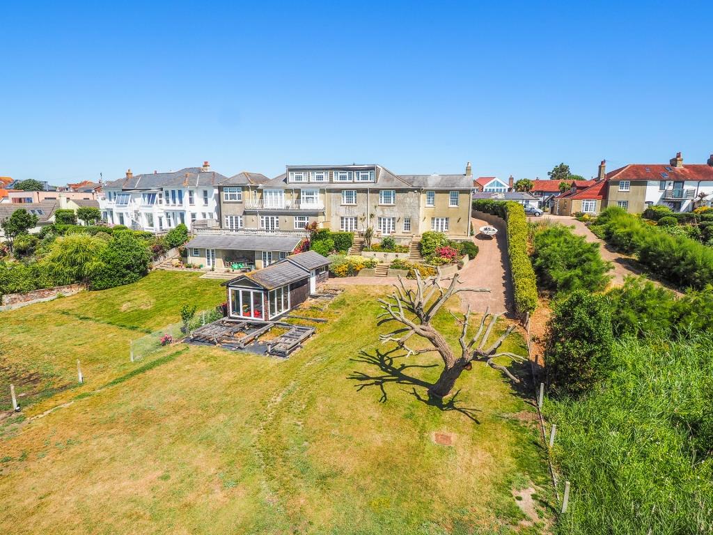 The setting of this property is what sets it apart from so many others, with its private beach access and generous gardens. The property is approached via a block paved driveway which leads down the side of the property to the gardens, providing parking for several cars and a single garage. There is a substantial terrace immediately adjacent to the rear of the property with steps and raised beds leading down to the remainder of the garden which is mainly laid to lawn. There is a substantial outbuilding approximately 32' in length currently divided into garden shed, wet room and summer house, offering numerous conversion opportunities.