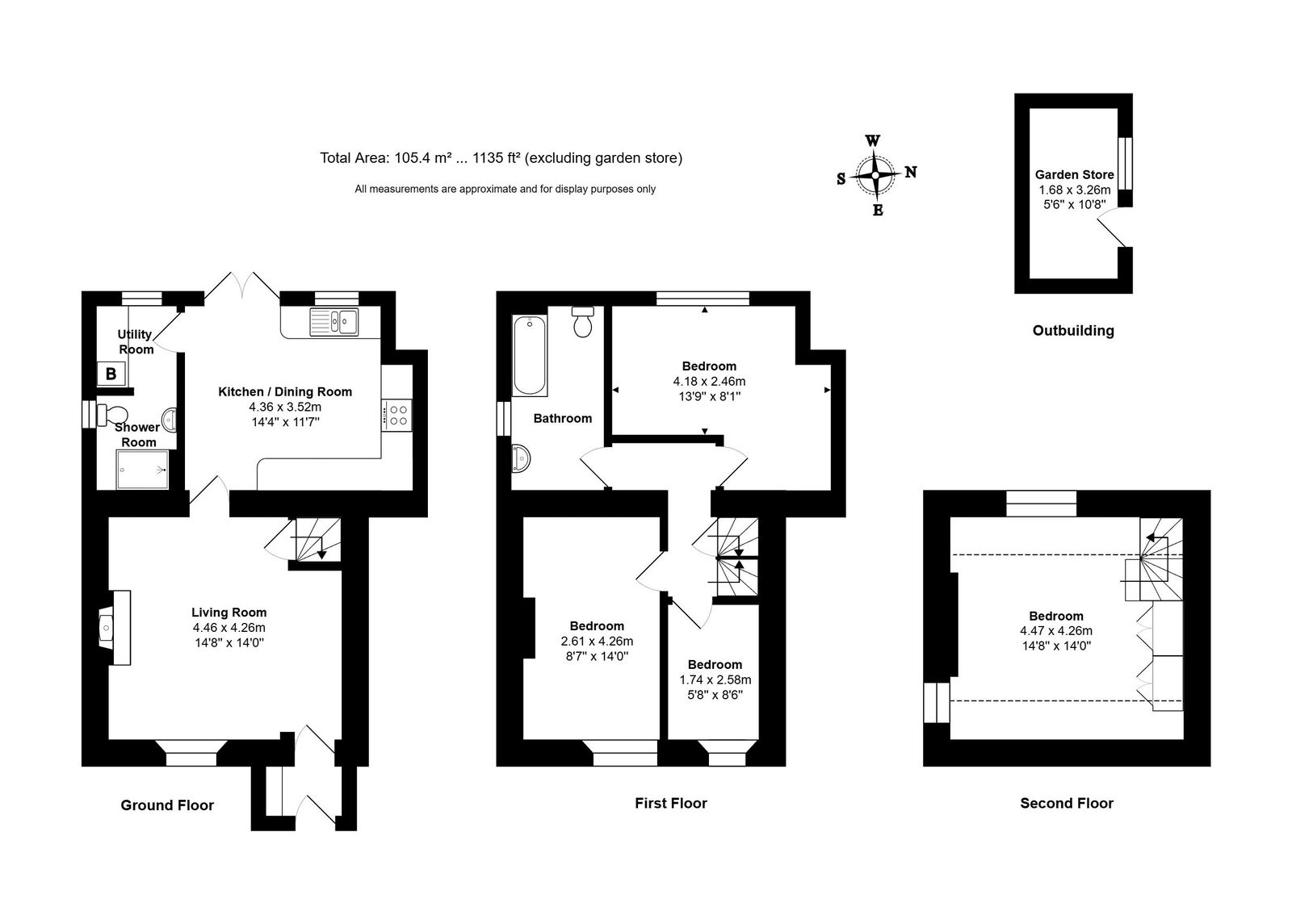 On the ground floor, a porch with a stable door opens to the front reception room which features a stone fireplace and woodburning stove inset plus a delightful window seat looking over the front garden. The kitchen/dining room is at the rear with double patio doors connecting to the garden behind. The kitchen with a range of timber units and has a utility room off the side with a convenient downstairs shower room. On the first floor there are two double bedrooms and a single bedroom alongside the family bathroom. On the top floor there is a magnificent bedroom with exposed beams. The cottage has superb views over the surrounding countryside reaching as far as the Welsh hills.