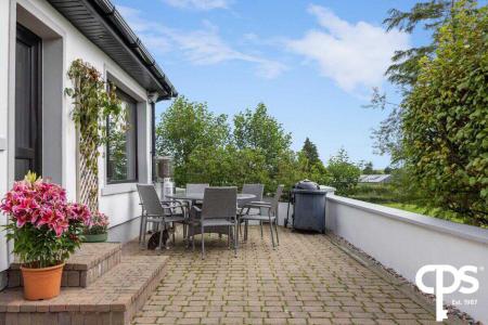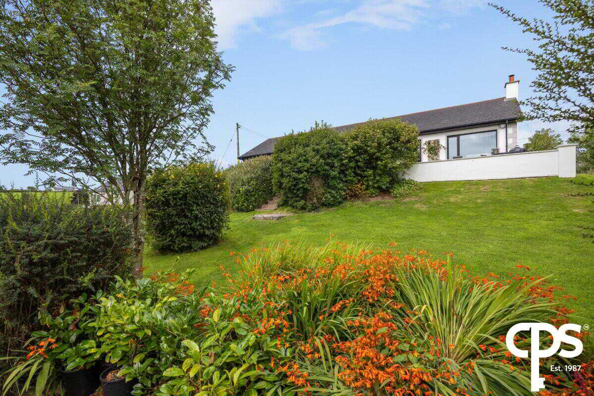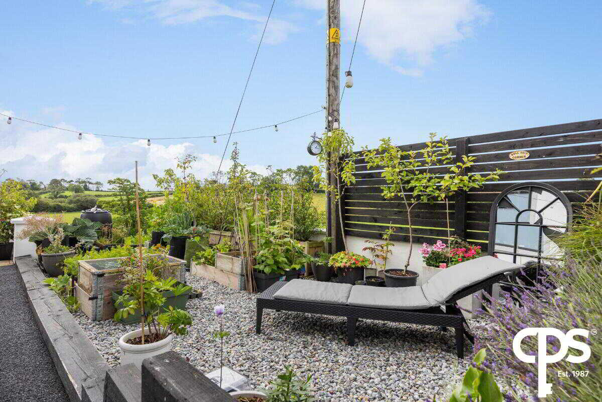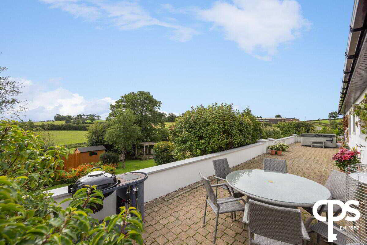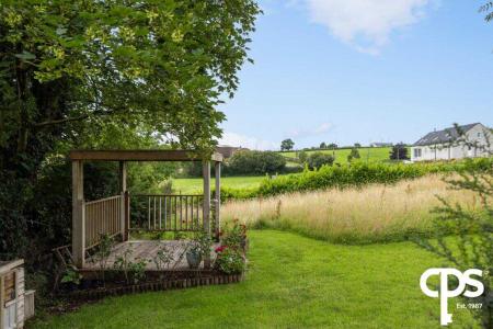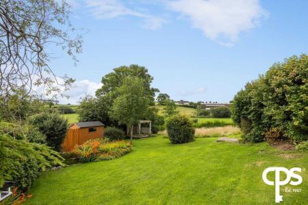 This spacious four-bedroom home is set on a generous site with mature front, side, and rear gardens, along with an elevated terrace that perfectly captures sweeping views over the surrounding countryside, the ideal spot for relaxing or entertaining.