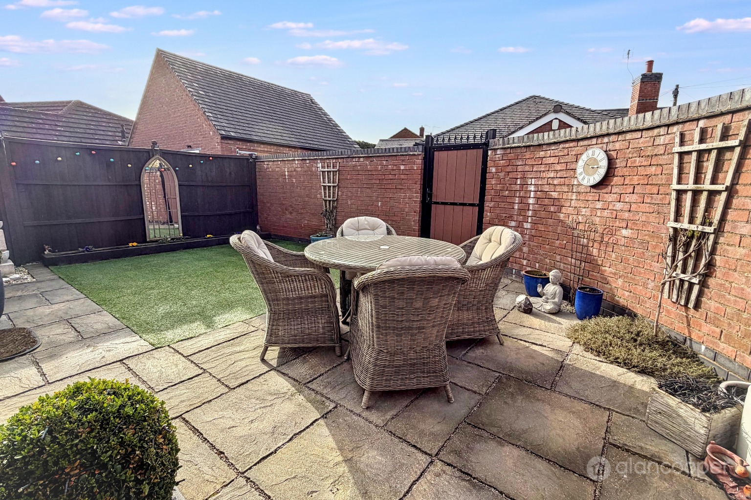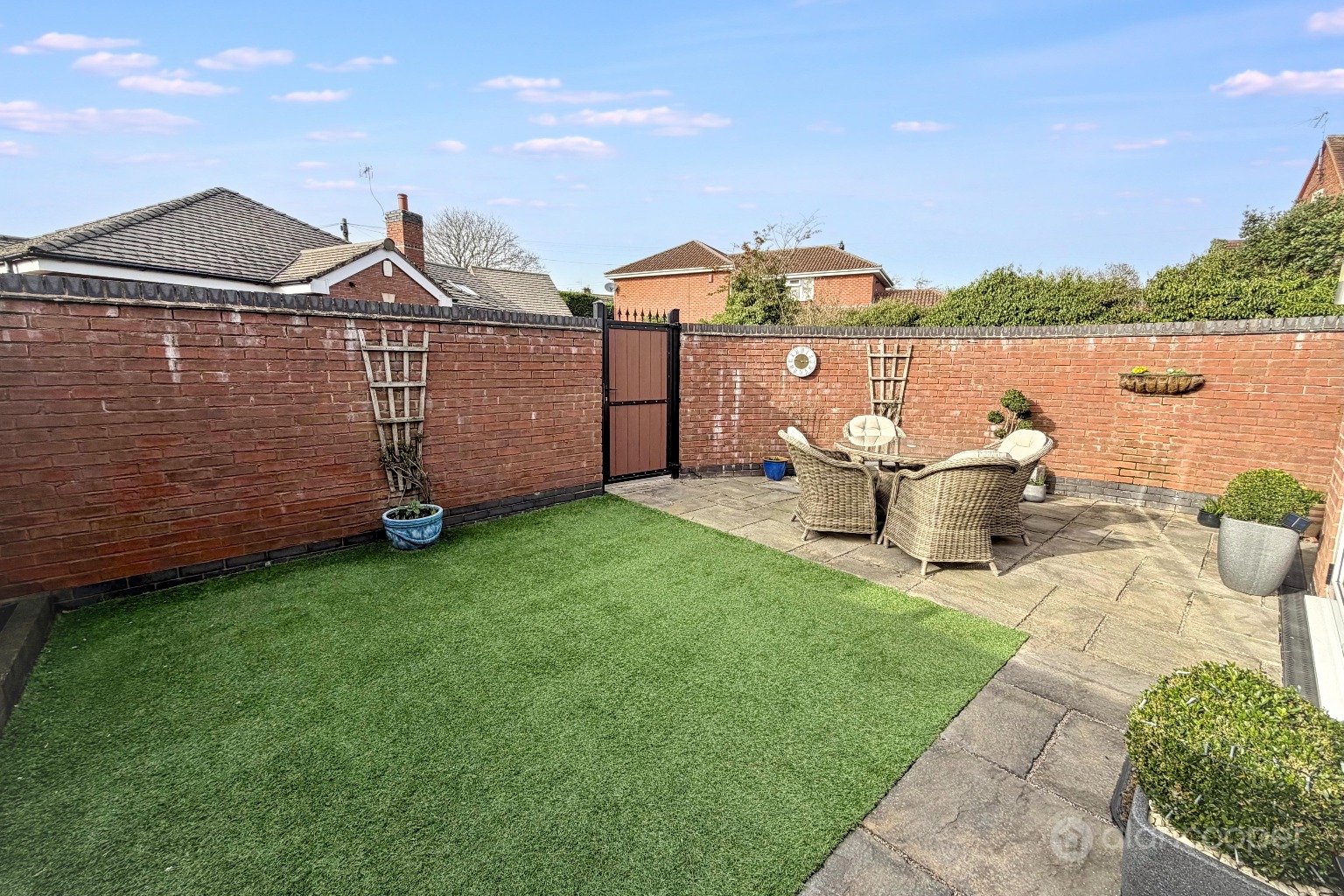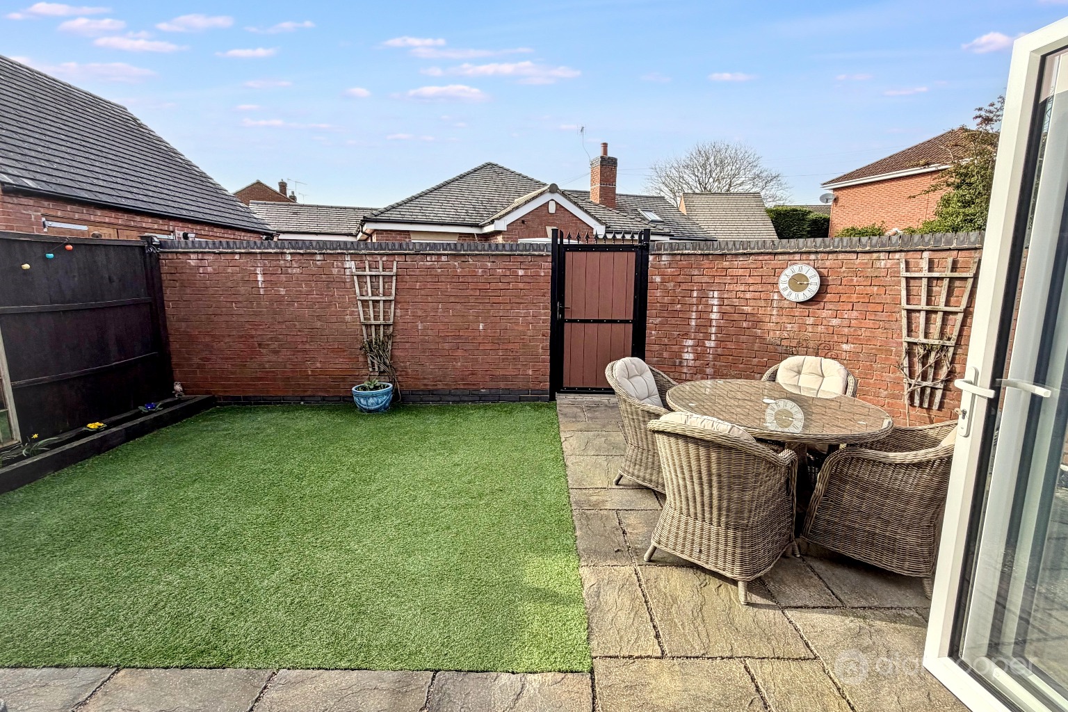 GardenThe fully enclosed rear garden is designed for ease of maintenance with a patio area and an artificial lawn. External electric sockets. There is side and rear pedestrian access through gates, which are of a composite material with cylinder locks.
