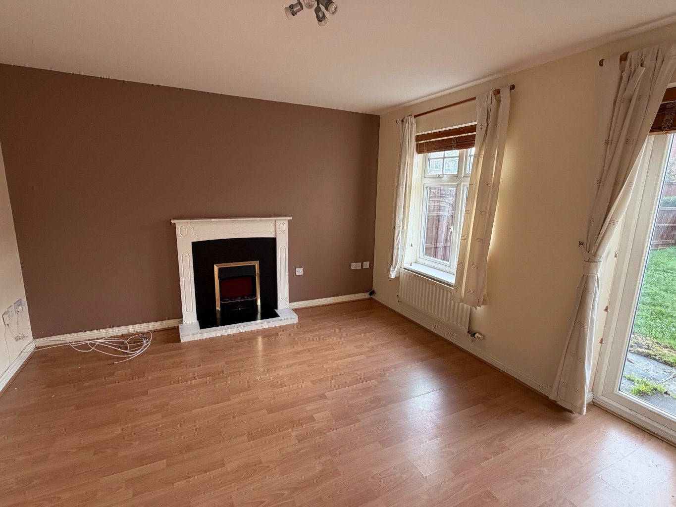 Lounge13' 11" x 11' 7"Having a feature fireplace housing an electric heater, two central heating radiators, built-in cupboard, UPVC sealed unit double glazed window and double doors leading to the rear garden.