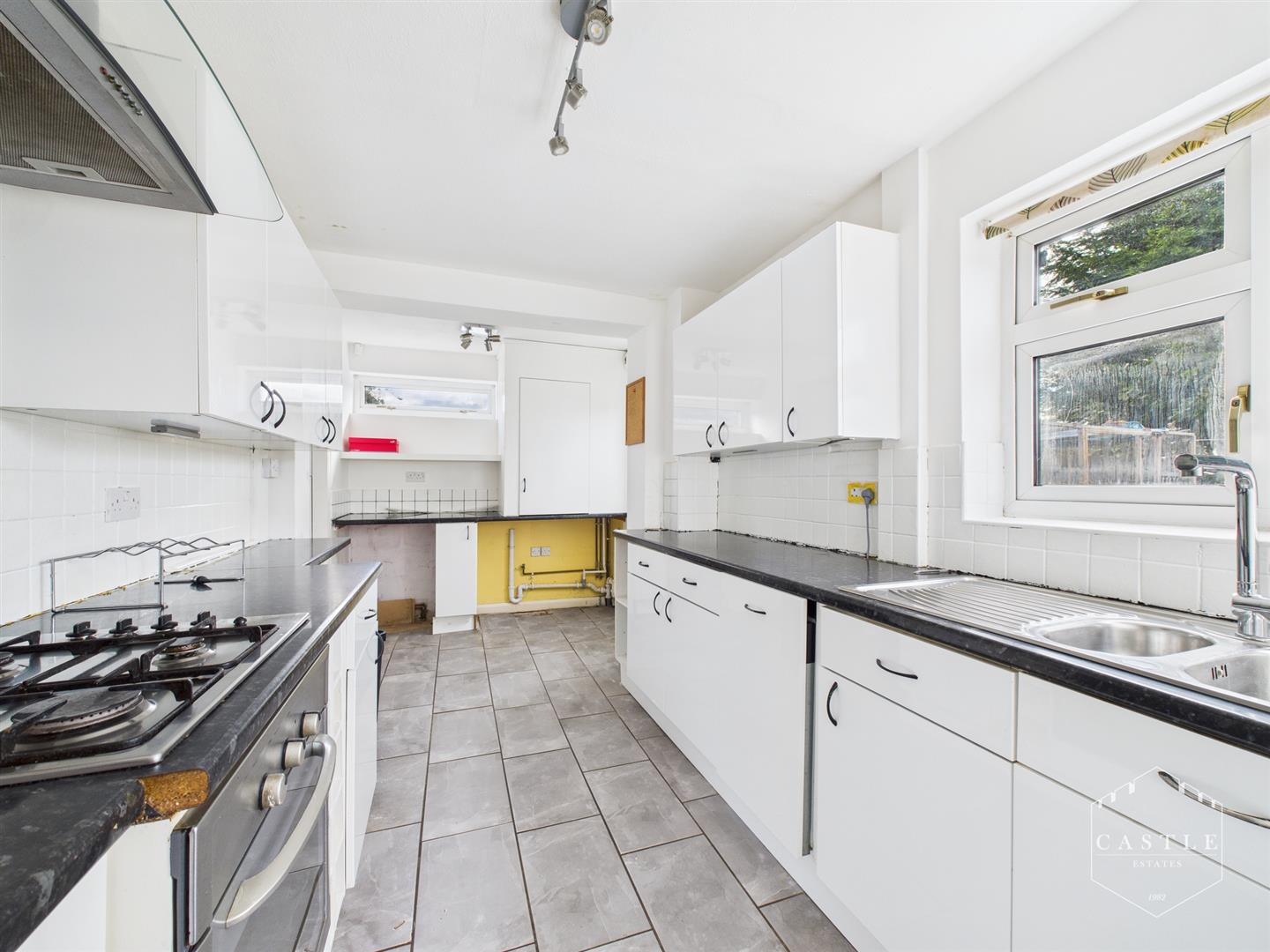 Kitchen - 5.16m x 2.08m (16'11" x 6'9" ) - having range of base units, drawers and wall cupboards, contrasting work surfaces and inset sink with mixer tap, built in oven, gas hob with extractor hood over, space and plumbing for washing machine, central heating radiator, upvc double glazed window to rear and door opening onto Garden.
