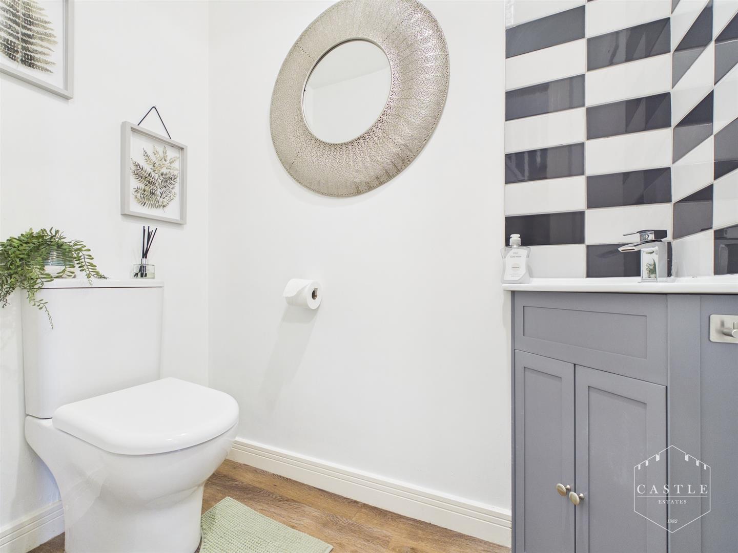 Cloakroom/Wc - 1.75m,0.97m (5'9,3'2) - Newly fitted suite with fitted corner basin with storage underneath and tile splashback, extractor fan, w/c, central heating radiator.