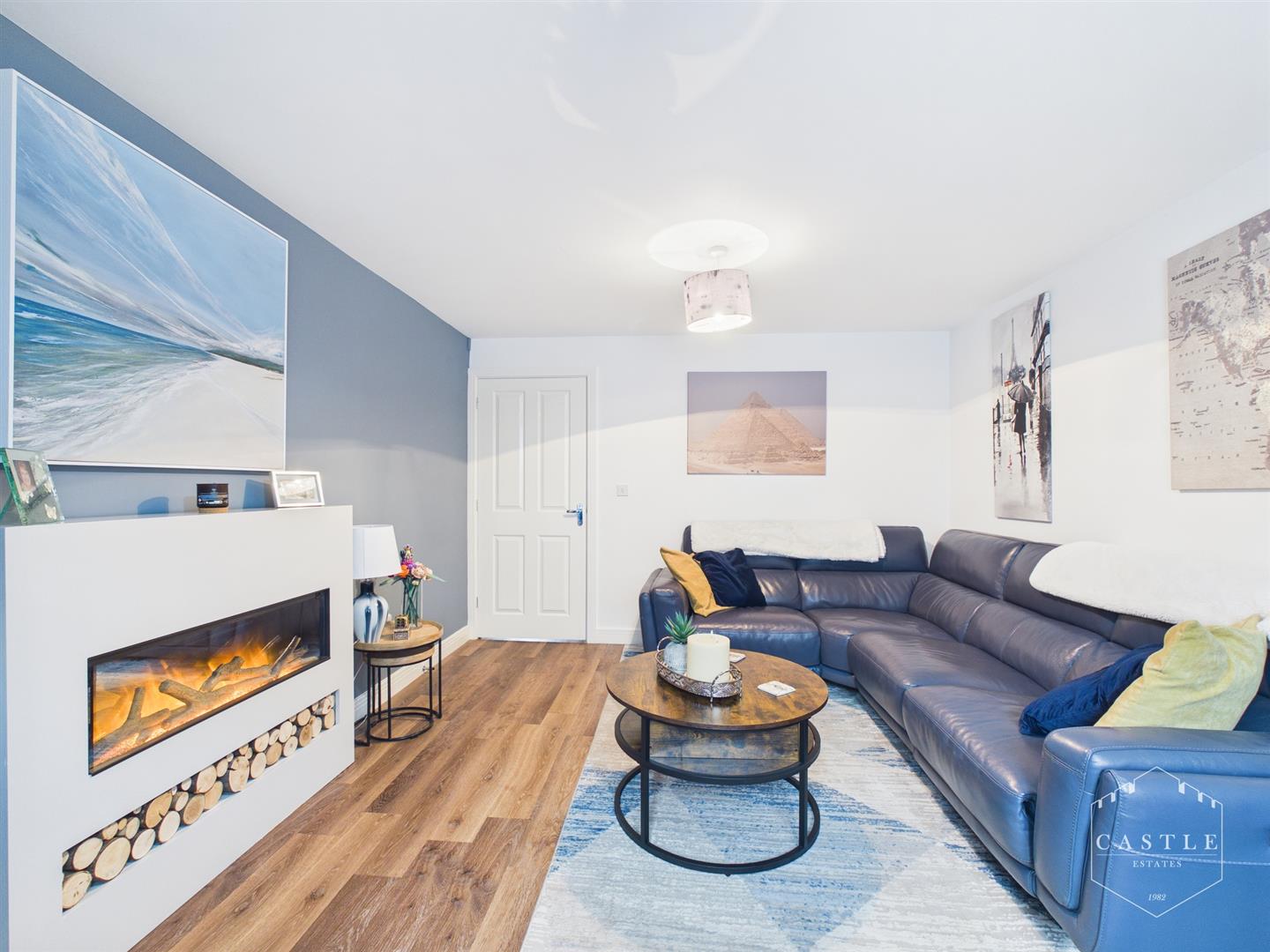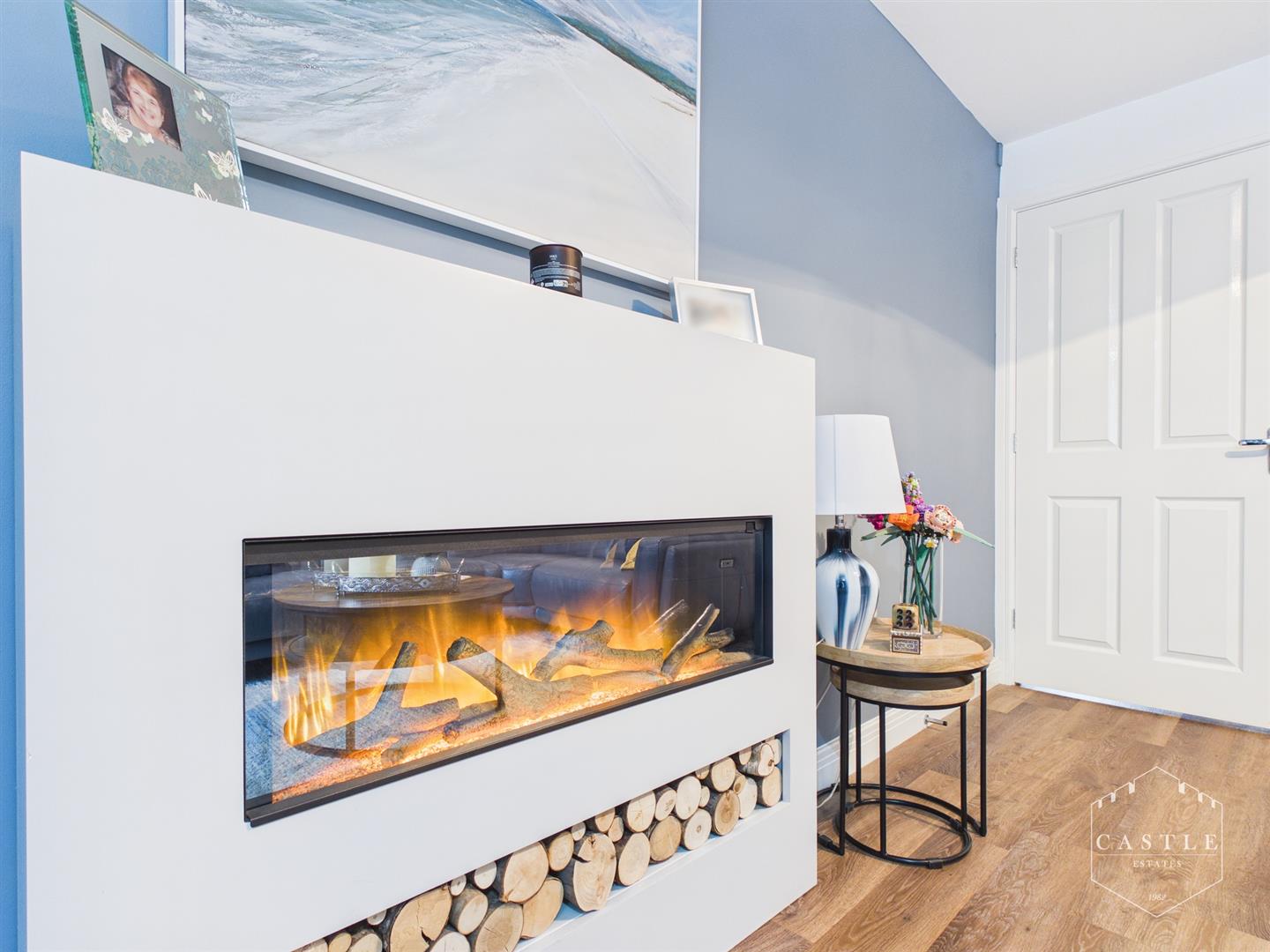 Lounge - 4.55m,3.56m (14'11,11'8) - To the rear elevation with window and fitted blind, feature electric fireplace, tv points, Karndean flooring, central heating radiator