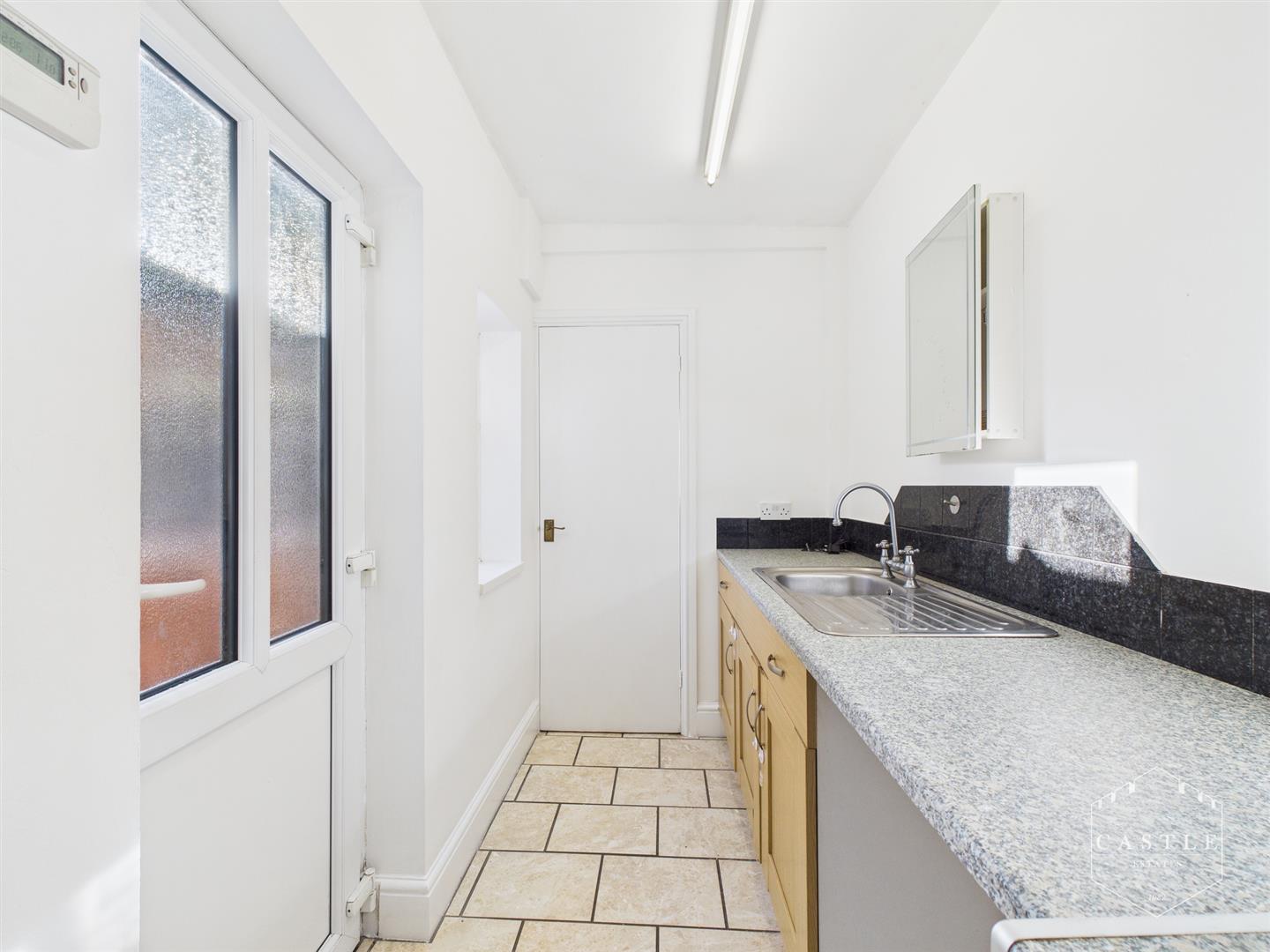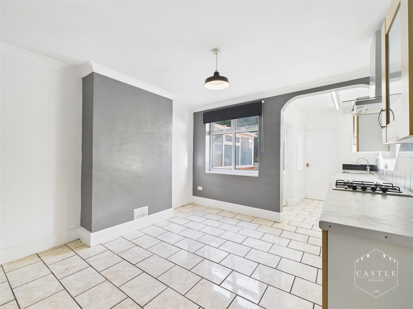 Dining Kitchen - 3.63m x 3.51m (11'10" x 11'6") - KITCHEN AREA having range of base units, drawers and wall cupboards, contrasting work surfaces and inset sink with mixer tap, built in oven, gas hob with splashback and cooker hood over, space and plumbing for washing machine, upvc double glazed window to side and door opening onto Rear Garden. Door to Shower Room.