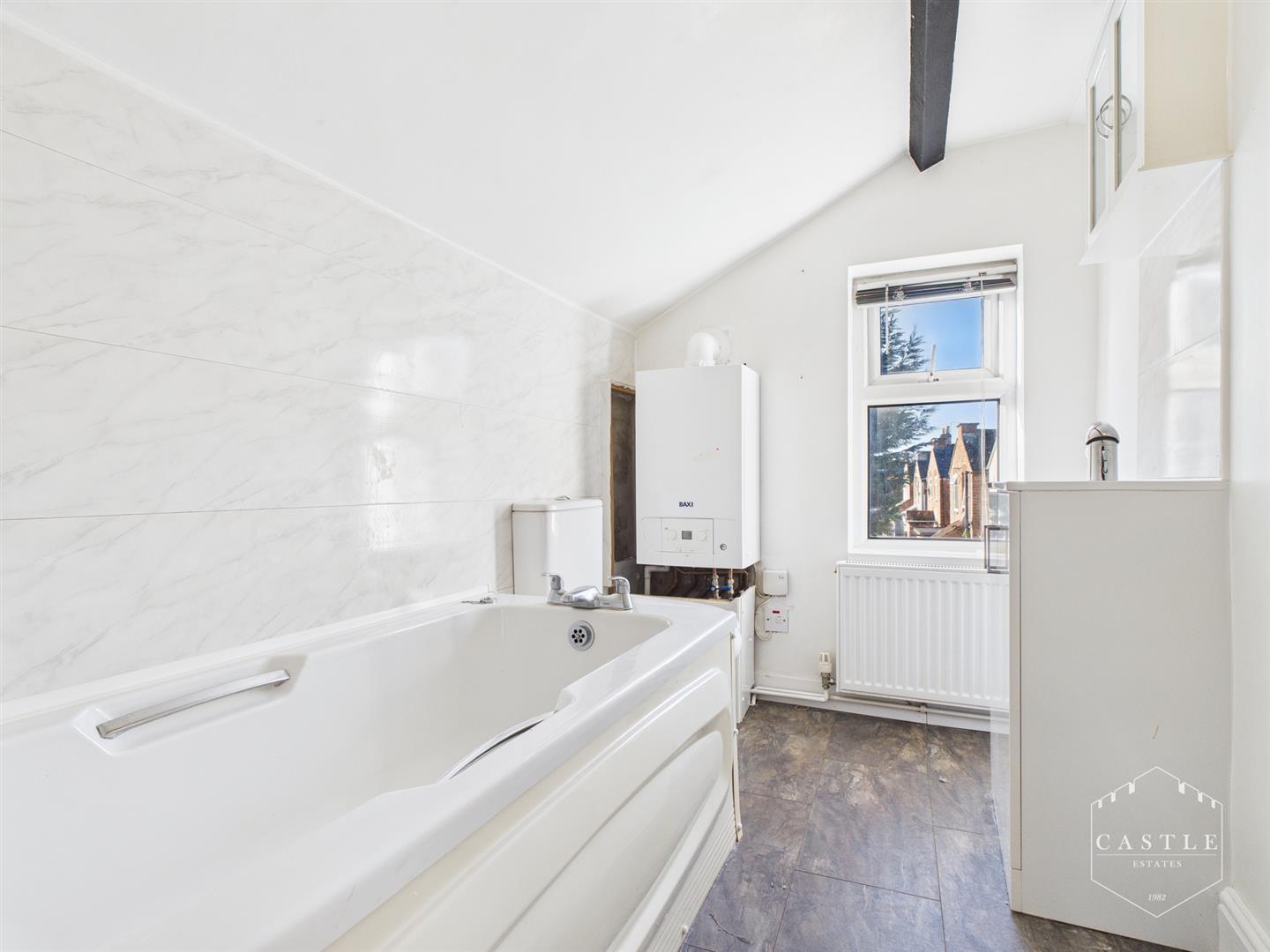 Bathroom - 2.45m x 1.57m (8'0" x 5'1" ) - having panelled bath, low level w.c., vanity unit with wash hand basin, central heating radiator, wall mounted gas fired boiler for central heating and domestic hot water, ceramic tiled splashbacks and upvc double glazed window to rear.